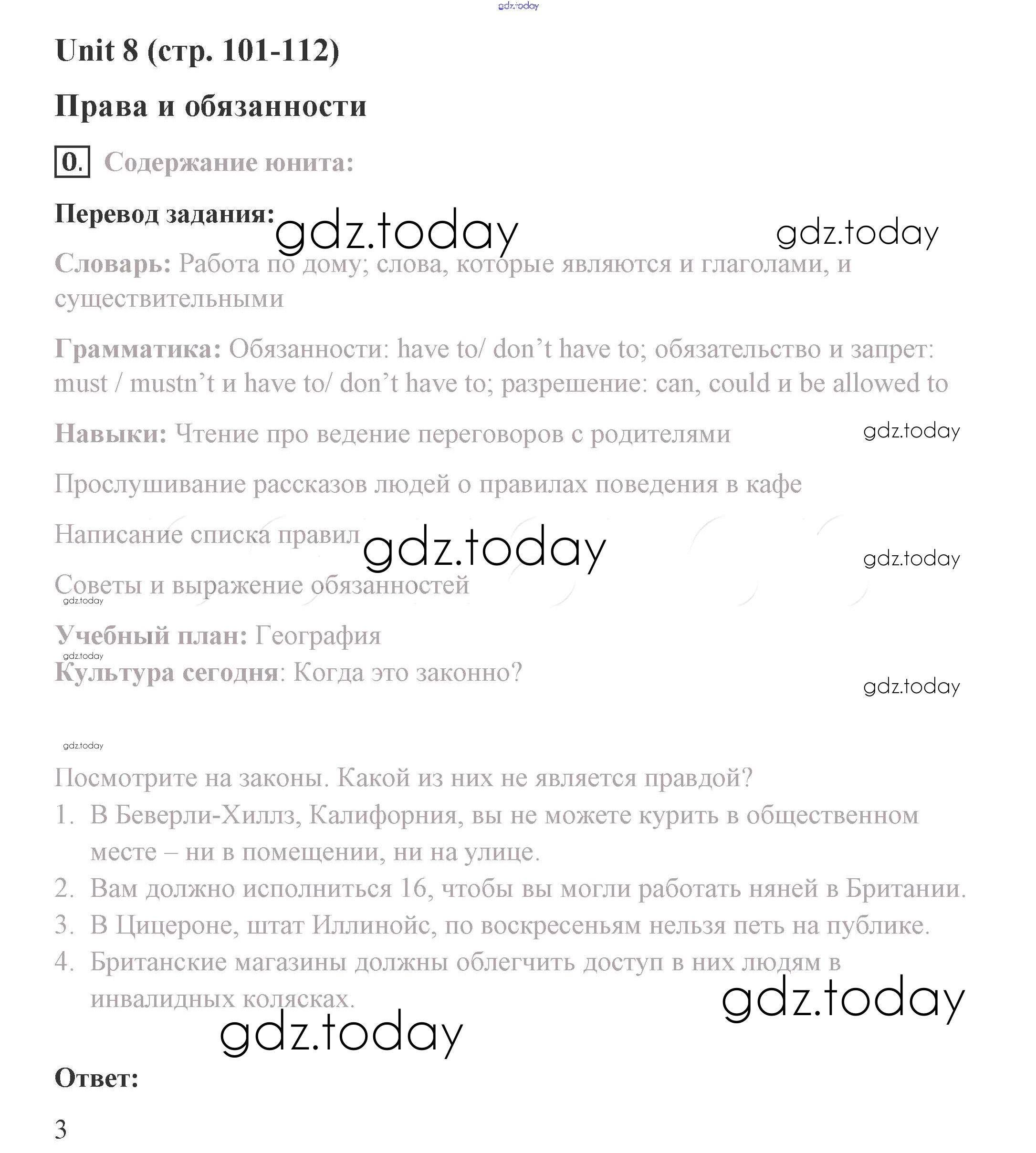 На страницах сайта gdz.today вы найдете учебный и вспомогательный материал, направленный на улучшения знаний школьной программы. ГДЗ - онлайн мир знаний Решение. Страницы 101 Учебнику по Английскому языку для 8 класса Комарова, Ларионова Русское слово Инновационная школа 2016