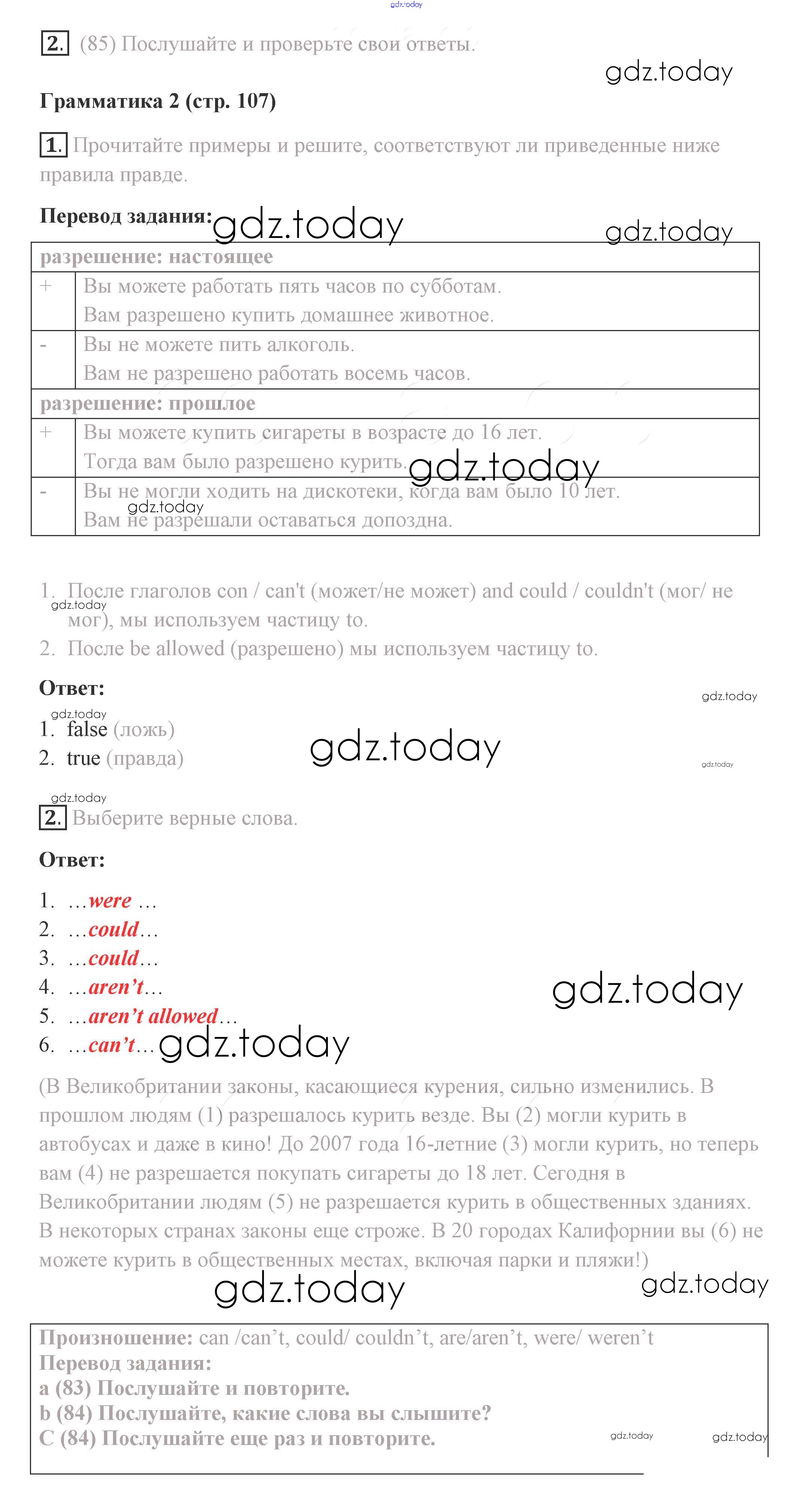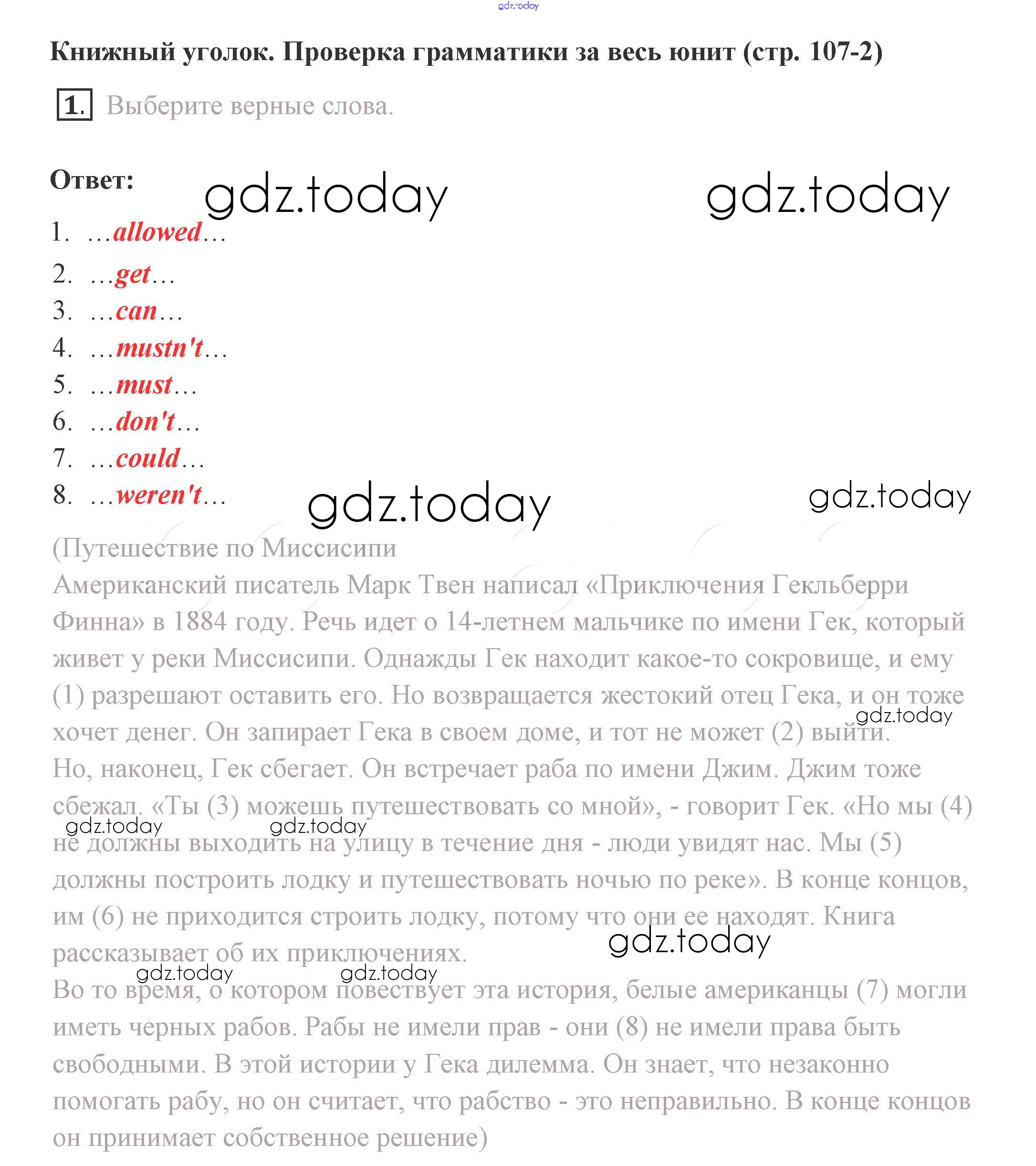 На страницах сайта gdz.today вы найдете учебный и вспомогательный материал, направленный на улучшения знаний школьной программы. ГДЗ - онлайн мир знаний Решение. Страницы 107 Учебнику по Английскому языку для 8 класса Комарова, Ларионова Русское слово Инновационная школа 2016