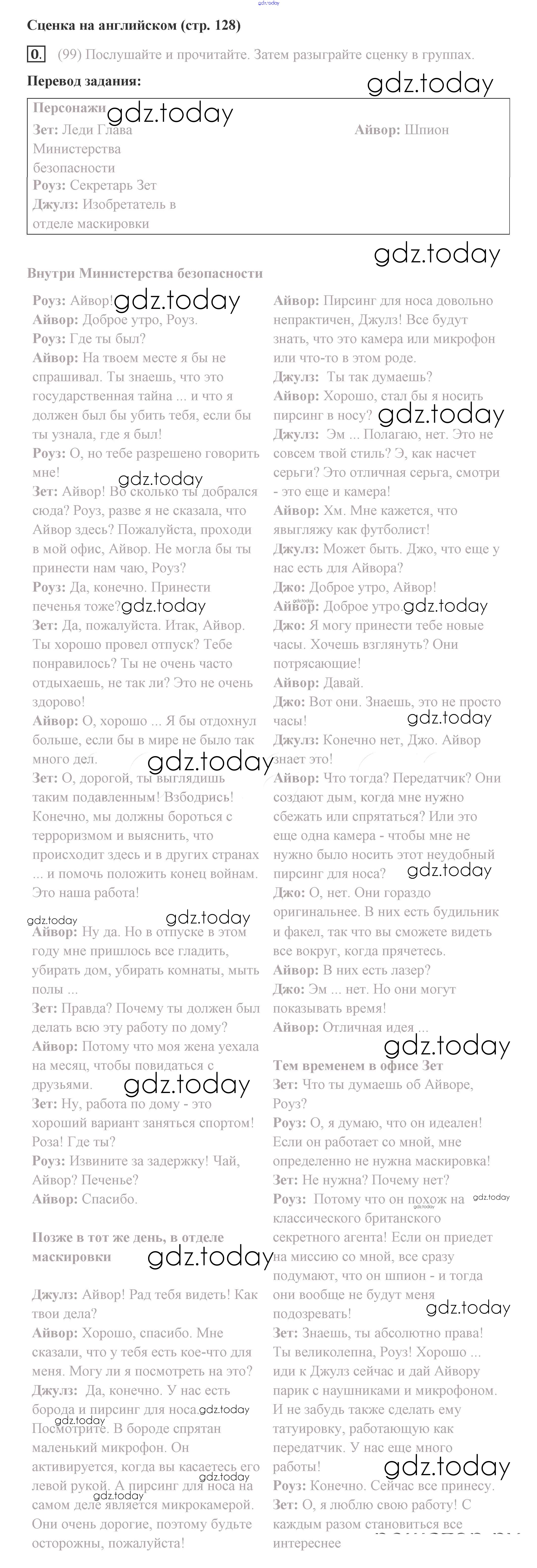 На страницах сайта gdz.today вы найдете учебный и вспомогательный материал, направленный на улучшения знаний школьной программы. ГДЗ - онлайн мир знаний Решение. Страницы 128 Учебнику по Английскому языку для 8 класса Комарова, Ларионова Русское слово Инновационная школа 2016