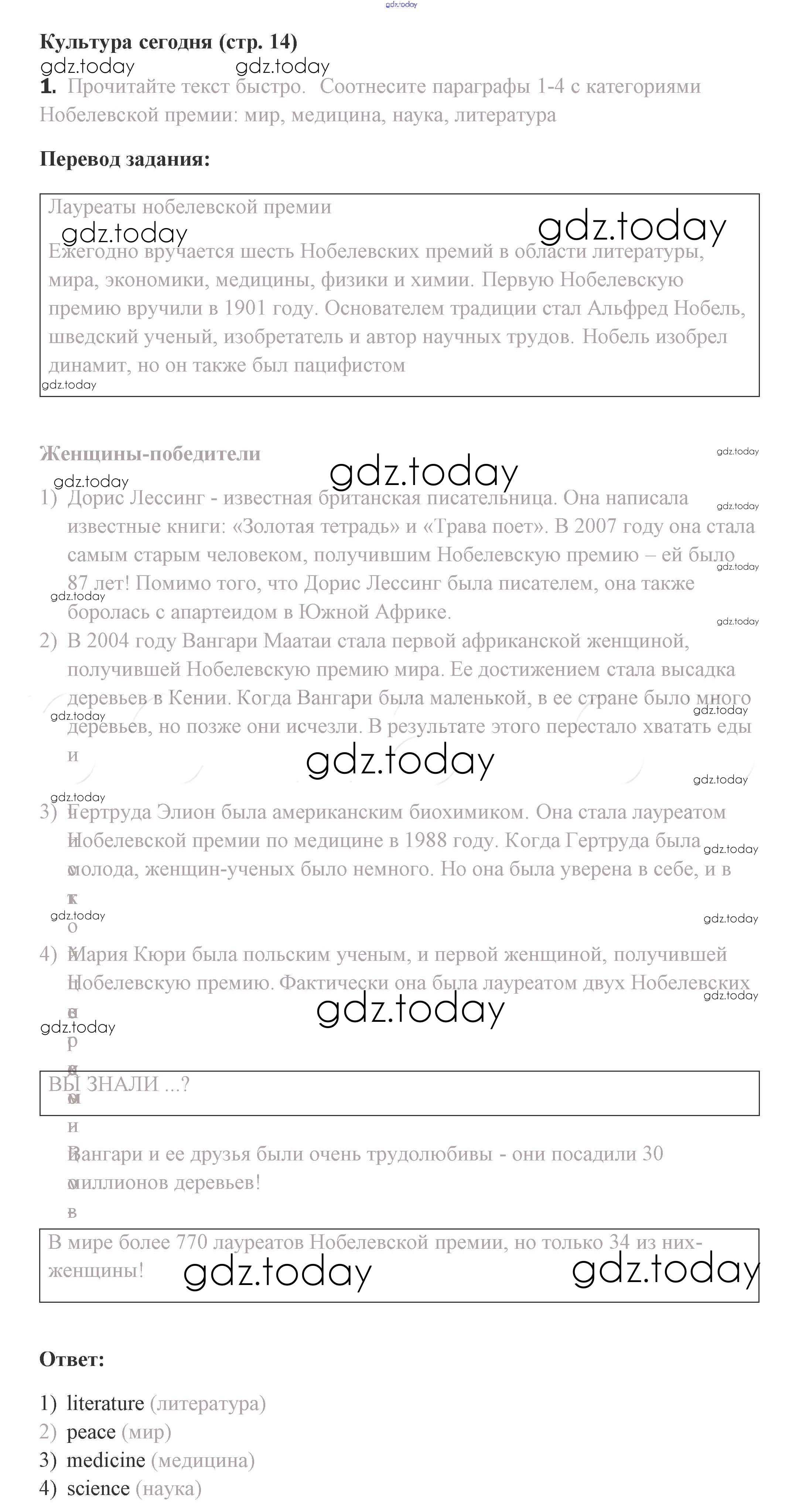 На страницах сайта gdz.today вы найдете учебный и вспомогательный материал, направленный на улучшения знаний школьной программы. ГДЗ - онлайн мир знаний Решение. Страницы 14 Учебнику по Английскому языку для 8 класса Комарова, Ларионова Русское слово Инновационная школа 2016