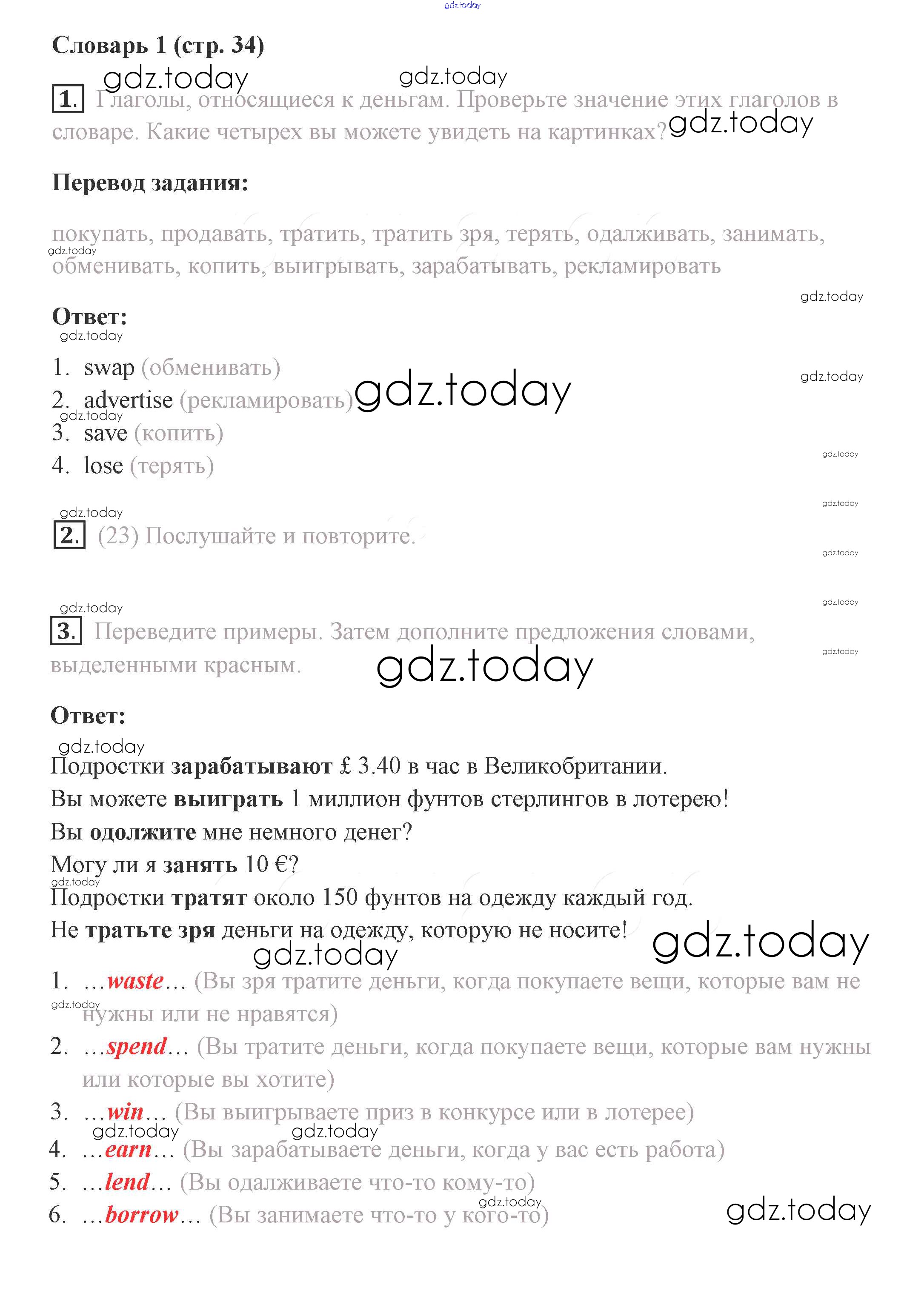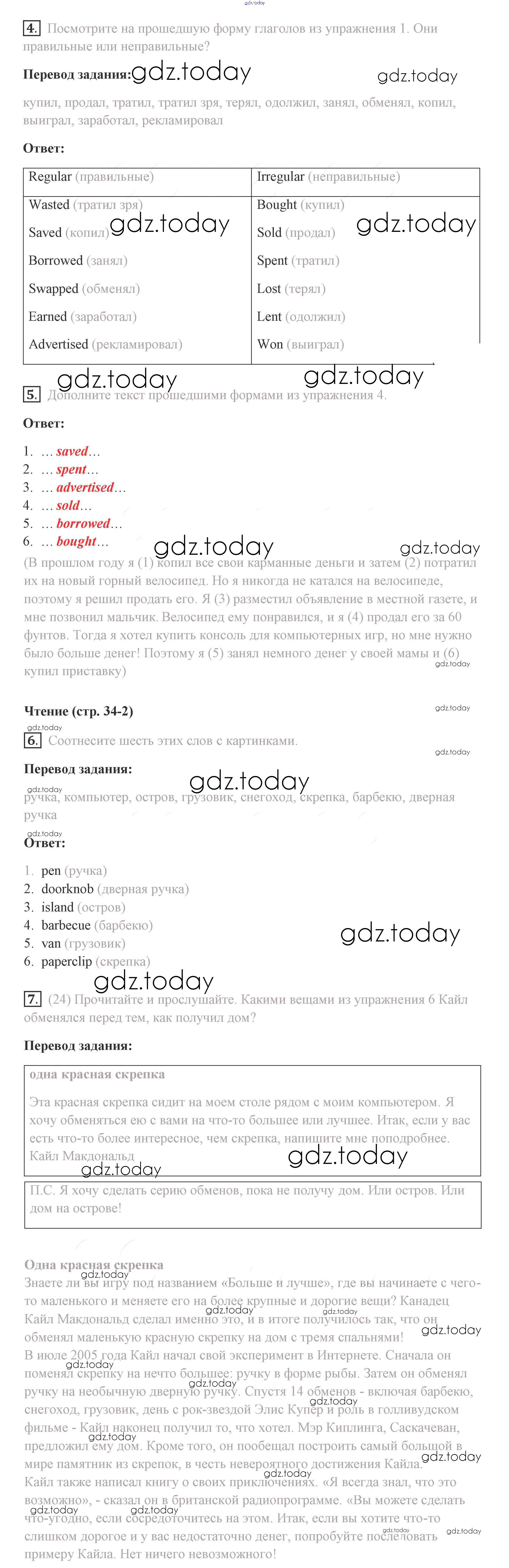 Ответы к Решение. Страницы 34 Учебнику по Английскому языку для 8 класса Комарова, Ларионова Русское слово Инновационная школа 2016