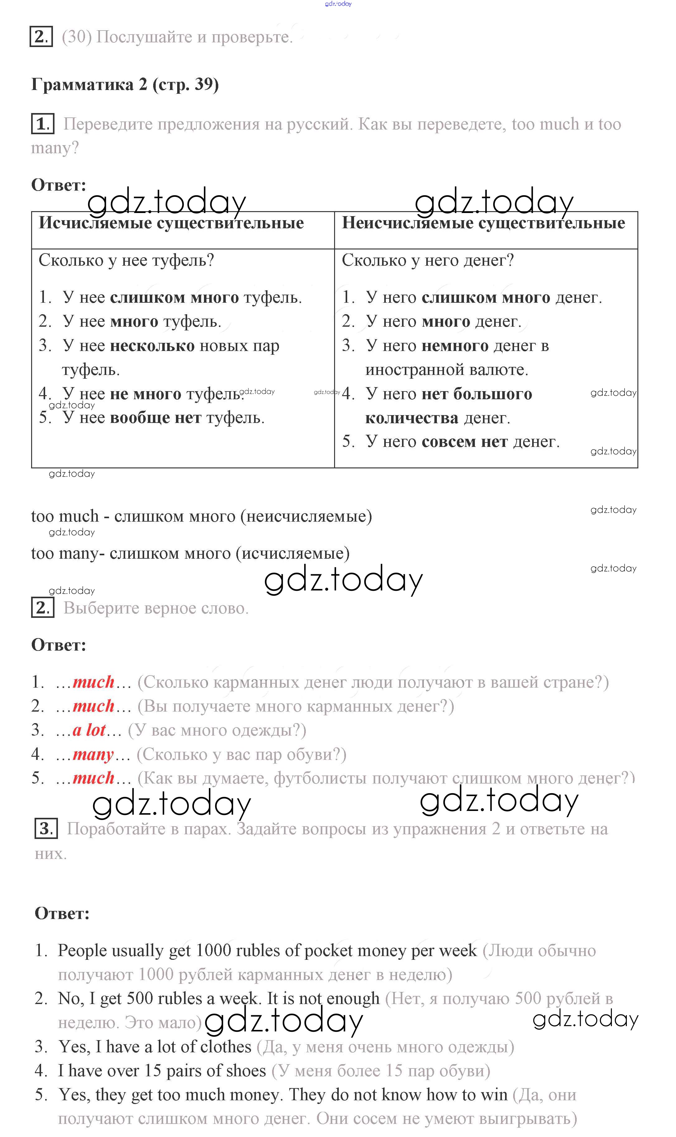 Ответы к Решение. Страницы 39 Учебнику по Английскому языку для 8 класса Комарова, Ларионова Русское слово Инновационная школа 2016