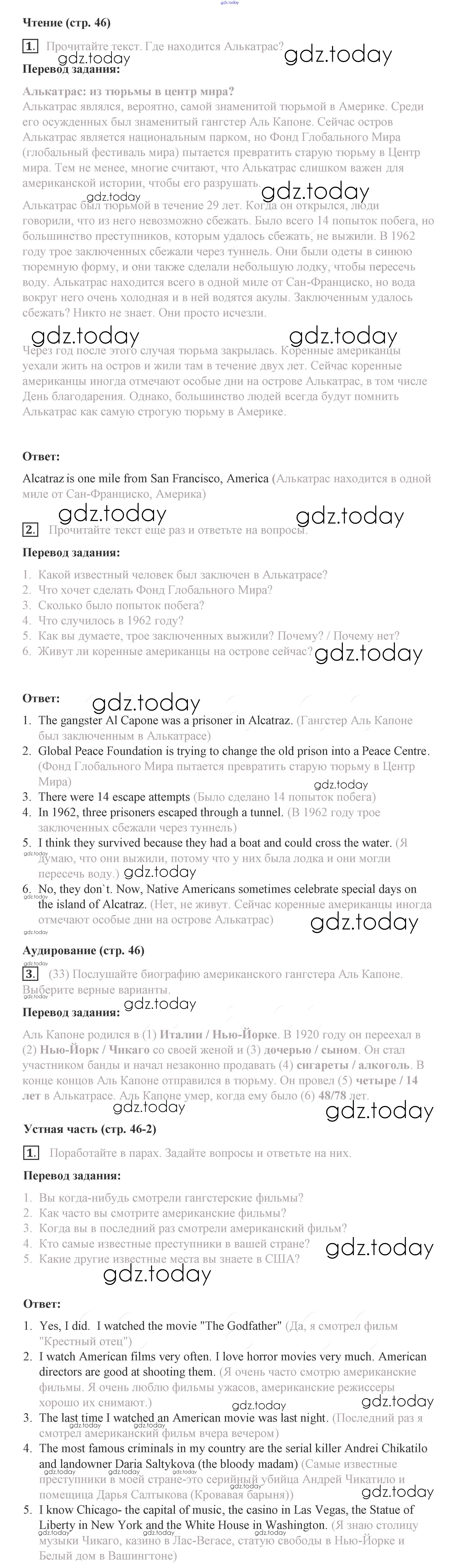 На страницах сайта gdz.today вы найдете учебный и вспомогательный материал, направленный на улучшения знаний школьной программы. ГДЗ - онлайн мир знаний Решение. Страницы 46 Учебнику по Английскому языку для 8 класса Комарова, Ларионова Русское слово Инновационная школа 2016
