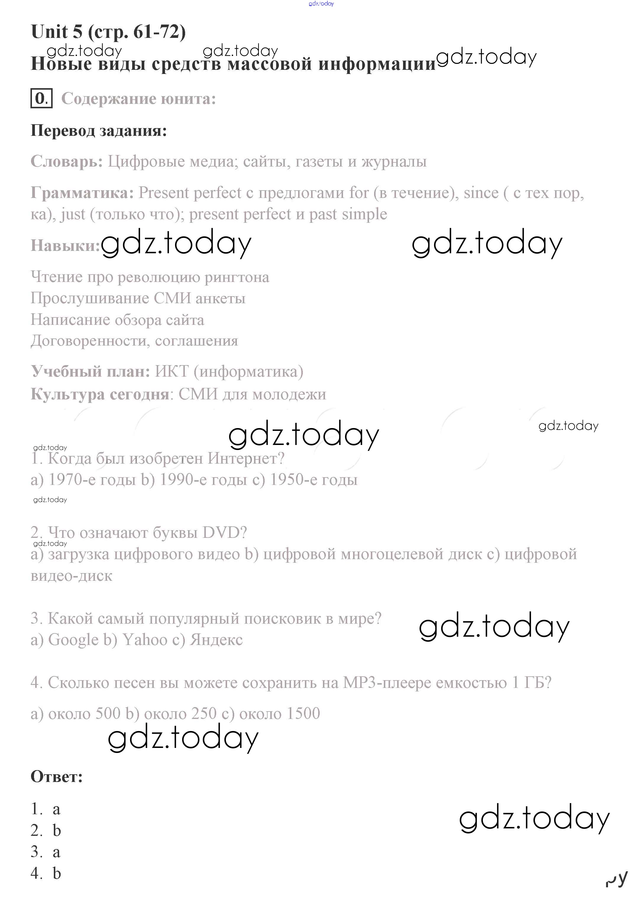На страницах сайта gdz.today вы найдете учебный и вспомогательный материал, направленный на улучшения знаний школьной программы. ГДЗ - онлайн мир знаний Решение. Страницы 61 Учебнику по Английскому языку для 8 класса Комарова, Ларионова Русское слово Инновационная школа 2016
