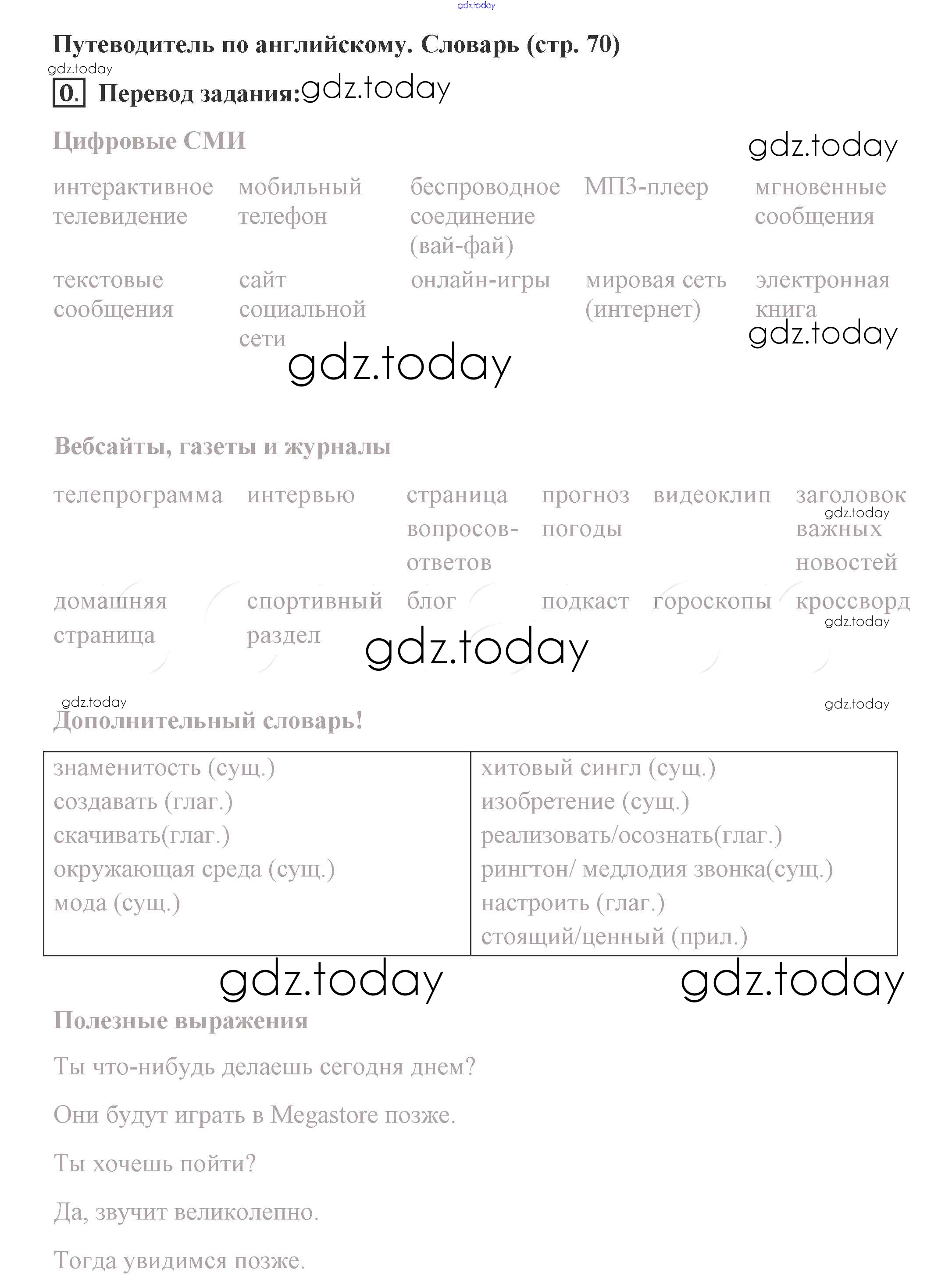 На страницах сайта gdz.today вы найдете учебный и вспомогательный материал, направленный на улучшения знаний школьной программы. ГДЗ - онлайн мир знаний Решение. Страницы 70 Учебнику по Английскому языку для 8 класса Комарова, Ларионова Русское слово Инновационная школа 2016