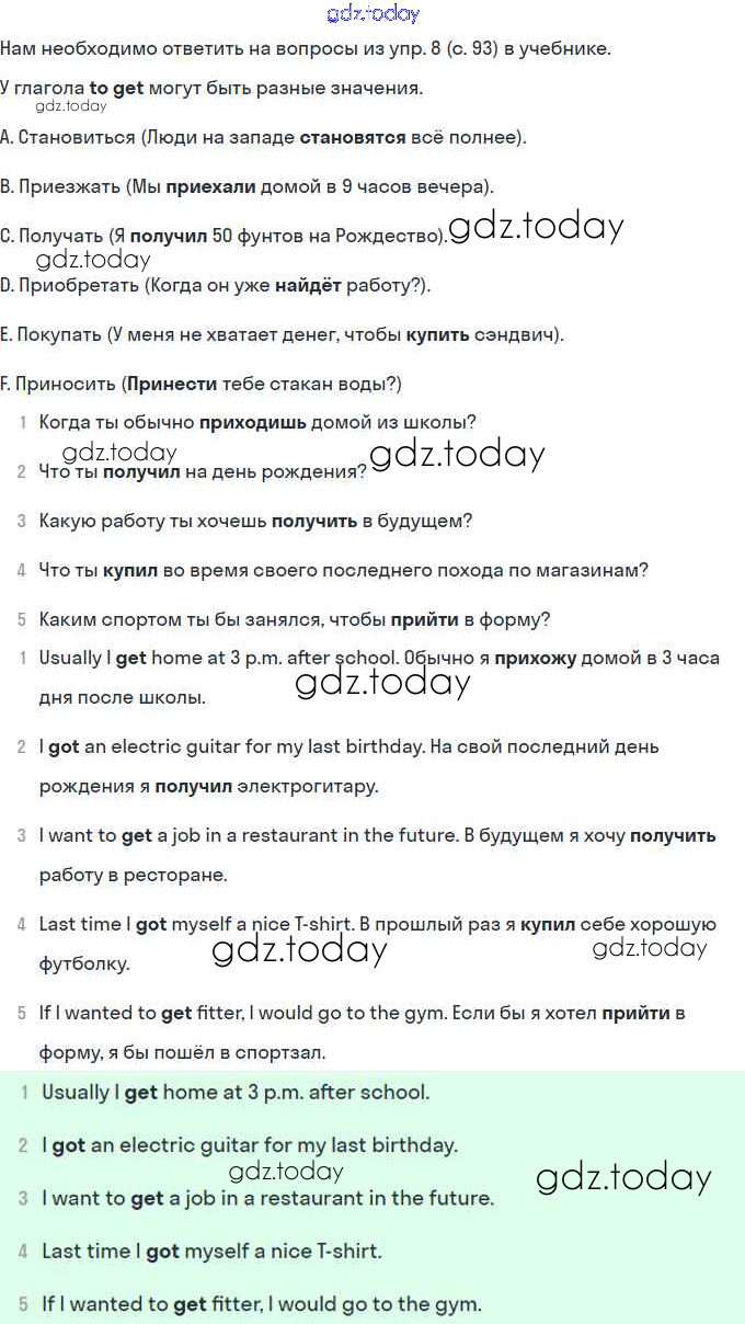 На страницах сайта gdz.today вы найдете учебный и вспомогательный материал, направленный на улучшения знаний школьной программы. ГДЗ - онлайн мир знаний Решение. Страницы 93 Учебнику по Английскому языку для 8 класса Комарова, Ларионова Русское слово Инновационная школа 2016