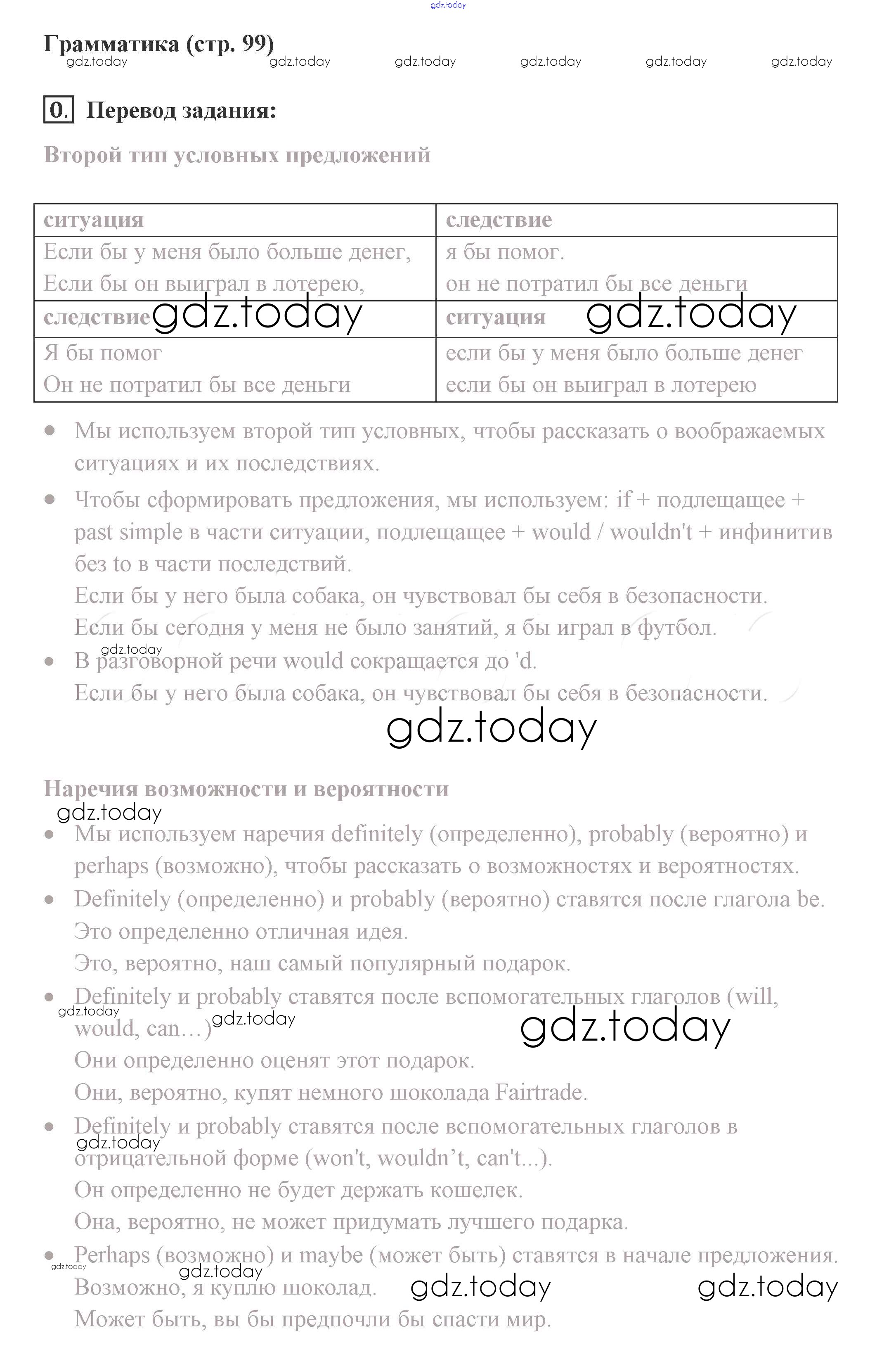 На страницах сайта gdz.today вы найдете учебный и вспомогательный материал, направленный на улучшения знаний школьной программы. ГДЗ - онлайн мир знаний Решение. Страницы 99 Учебнику по Английскому языку для 8 класса Комарова, Ларионова Русское слово Инновационная школа 2016