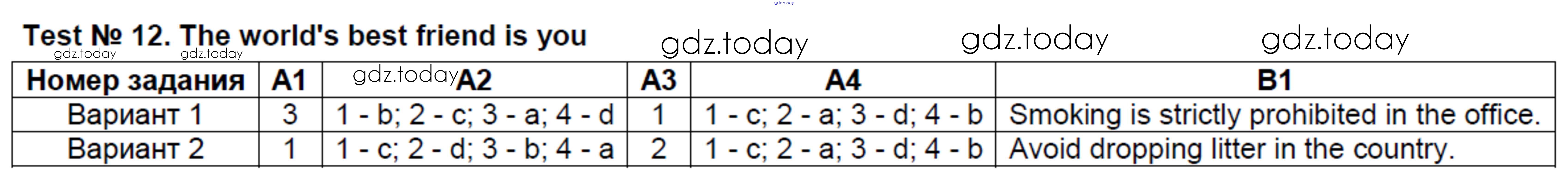 На страницах сайта gdz.today вы найдете учебный и вспомогательный материал, направленный на улучшения знаний школьной программы. ГДЗ - онлайн мир знаний Решение к тестам Test №12. The world's best friend is you Контрольно-измерительным материалам (КИМ) по Английскому языку для 8 класса Лысакова ВАКО 2018