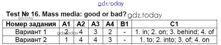 Ответы к Решение к тестам Test №16. Mass media - good or bad Контрольно-измерительным материалам (КИМ) по Английскому языку для 8 класса Лысакова ВАКО 2018