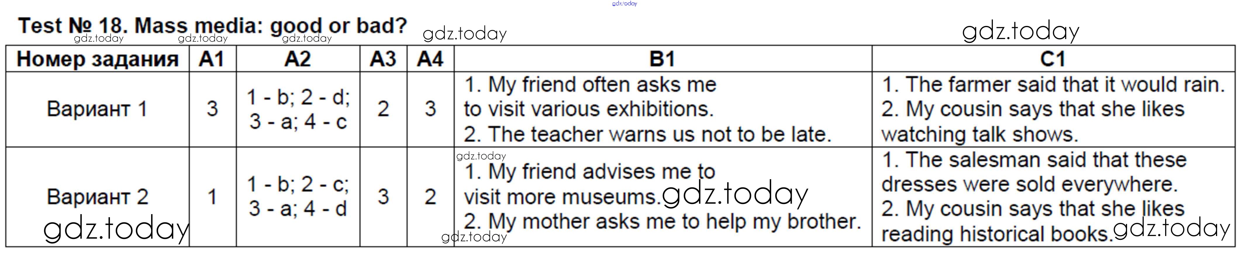На страницах сайта gdz.today вы найдете учебный и вспомогательный материал, направленный на улучшения знаний школьной программы. ГДЗ - онлайн мир знаний Решение к тестам Test №18. Mass media - good or bad Контрольно-измерительным материалам (КИМ) по Английскому языку для 8 класса Лысакова ВАКО 2018