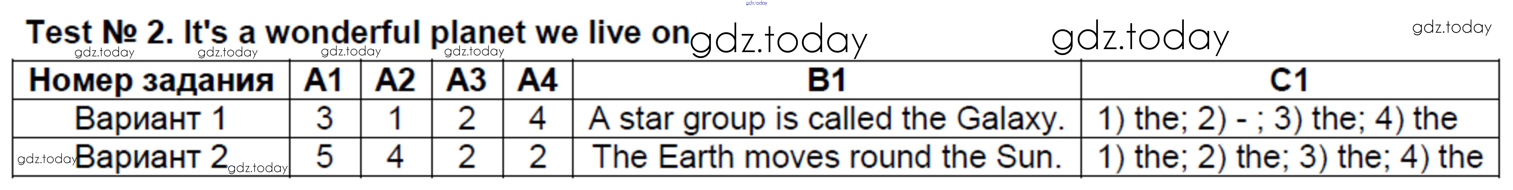 На страницах сайта gdz.today вы найдете учебный и вспомогательный материал, направленный на улучшения знаний школьной программы. ГДЗ - онлайн мир знаний Решение к тестам Test №2. It's a wonderful planet we live on Контрольно-измерительным материалам (КИМ) по Английскому языку для 8 класса Лысакова ВАКО 2018