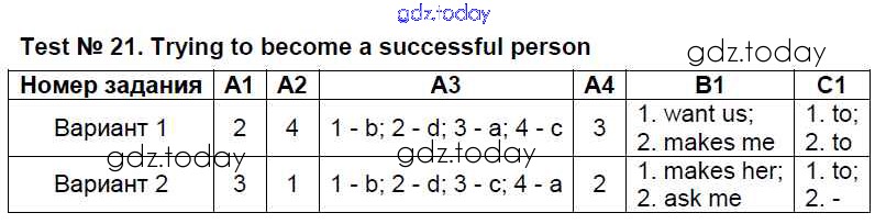 Ответы к Решение к тестам Test №21. Trying to become a successful person Контрольно-измерительным материалам (КИМ) по Английскому языку для 8 класса Лысакова ВАКО 2018