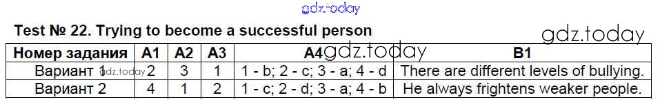 Ответы к Решение к тестам Test №22. Trying to become a successful person Контрольно-измерительным материалам (КИМ) по Английскому языку для 8 класса Лысакова ВАКО 2018