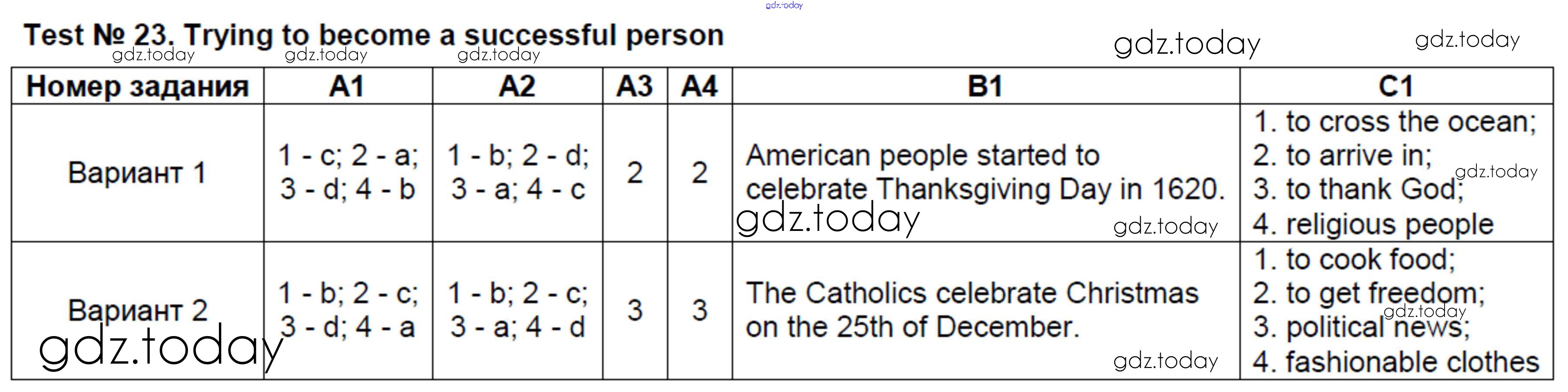Ответы к Решение к тестам Test №23. Trying to become a successful person Контрольно-измерительным материалам (КИМ) по Английскому языку для 8 класса Лысакова ВАКО 2018