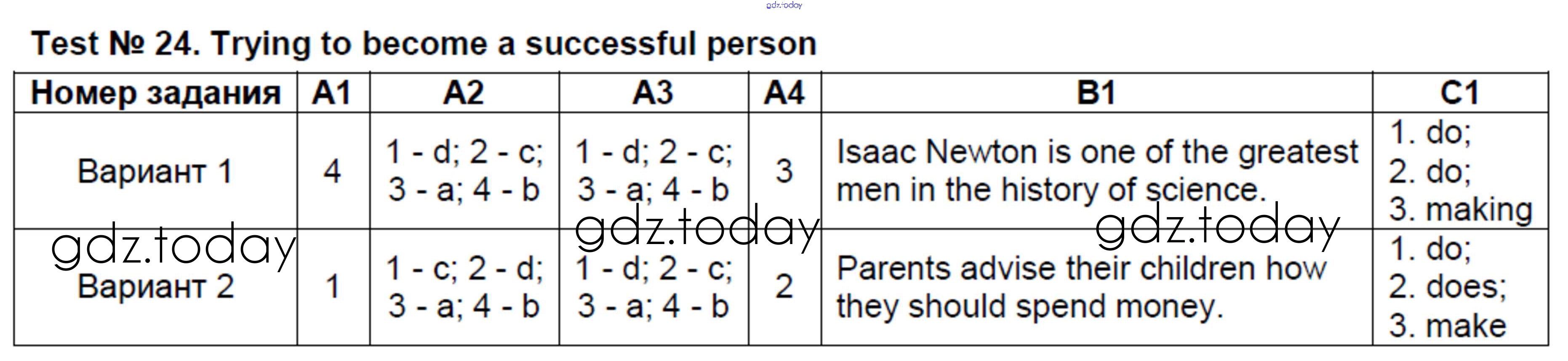 Ответы к Решение к тестам Test №24. Trying to become a successful person Контрольно-измерительным материалам (КИМ) по Английскому языку для 8 класса Лысакова ВАКО 2018