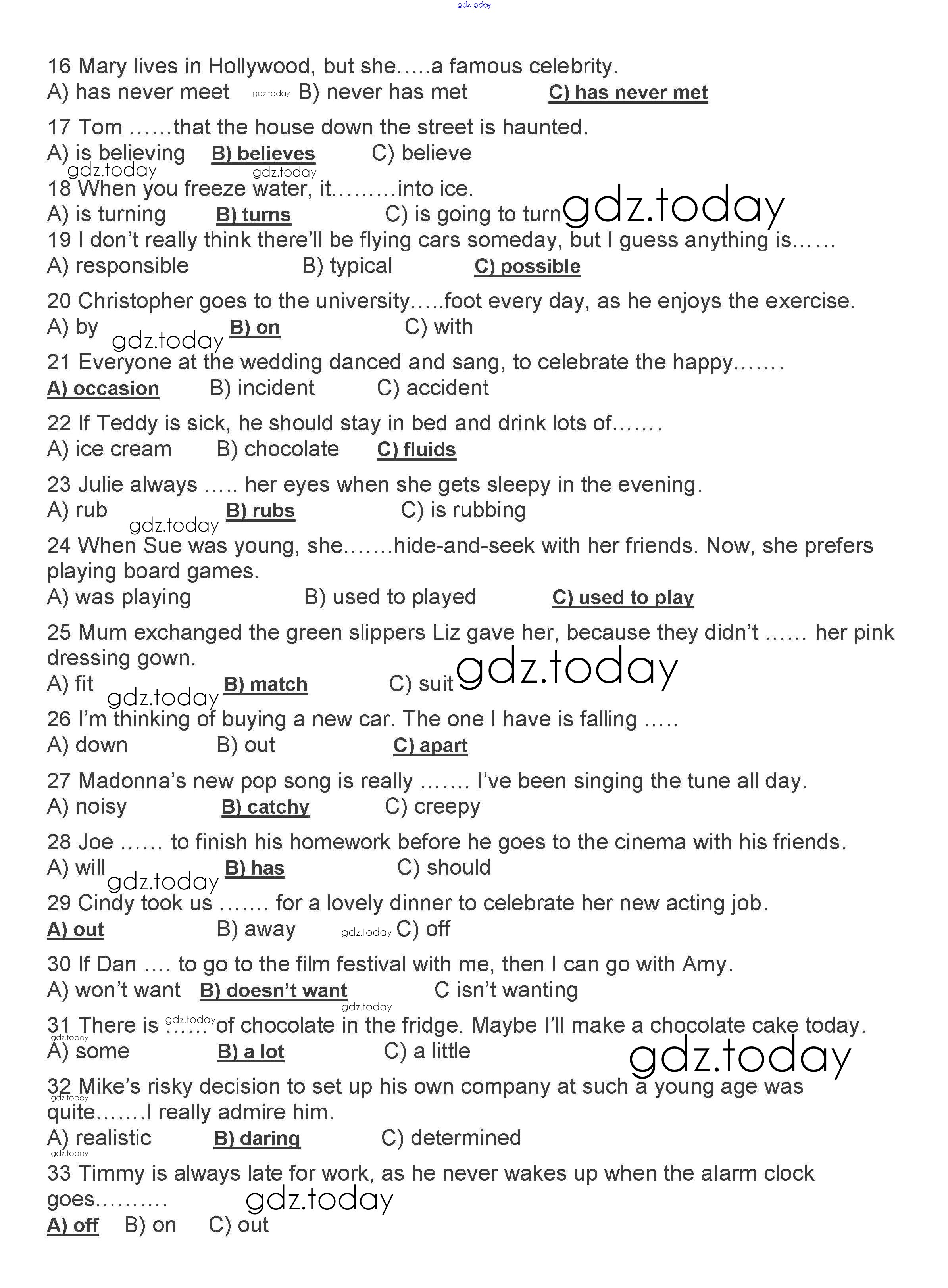 Ответы к Решение. Входной тест 1 Контрольным заданиям по Английскому языку для 8 класса Ваулина, Дули Просвещение Spotlight 2018