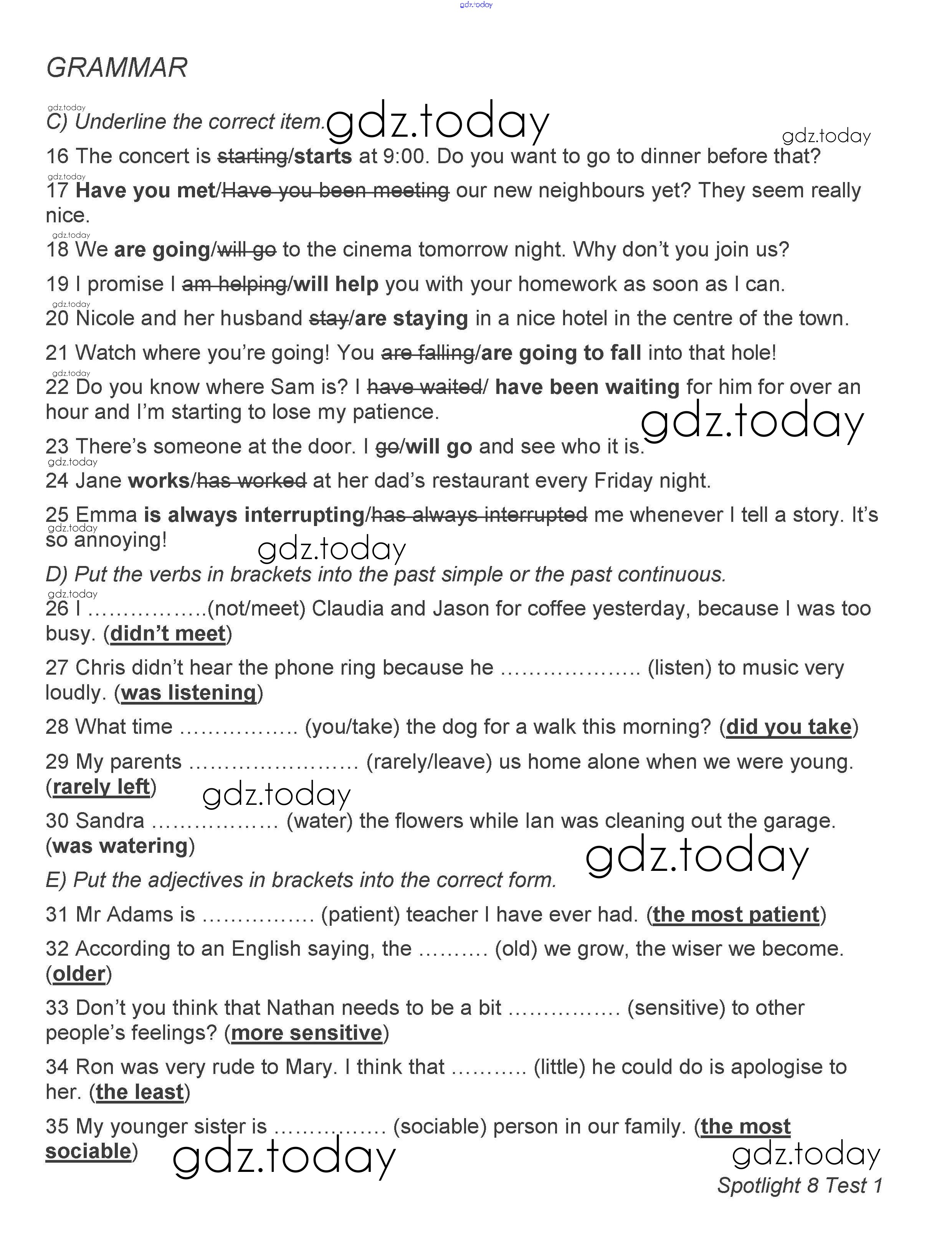 На страницах сайта gdz.today вы найдете учебный и вспомогательный материал, направленный на улучшения знаний школьной программы. ГДЗ - онлайн мир знаний Решение. Контрольная работа 1 C, D Контрольным заданиям по Английскому языку для 8 класса Ваулина, Дули Просвещение Spotlight 2018