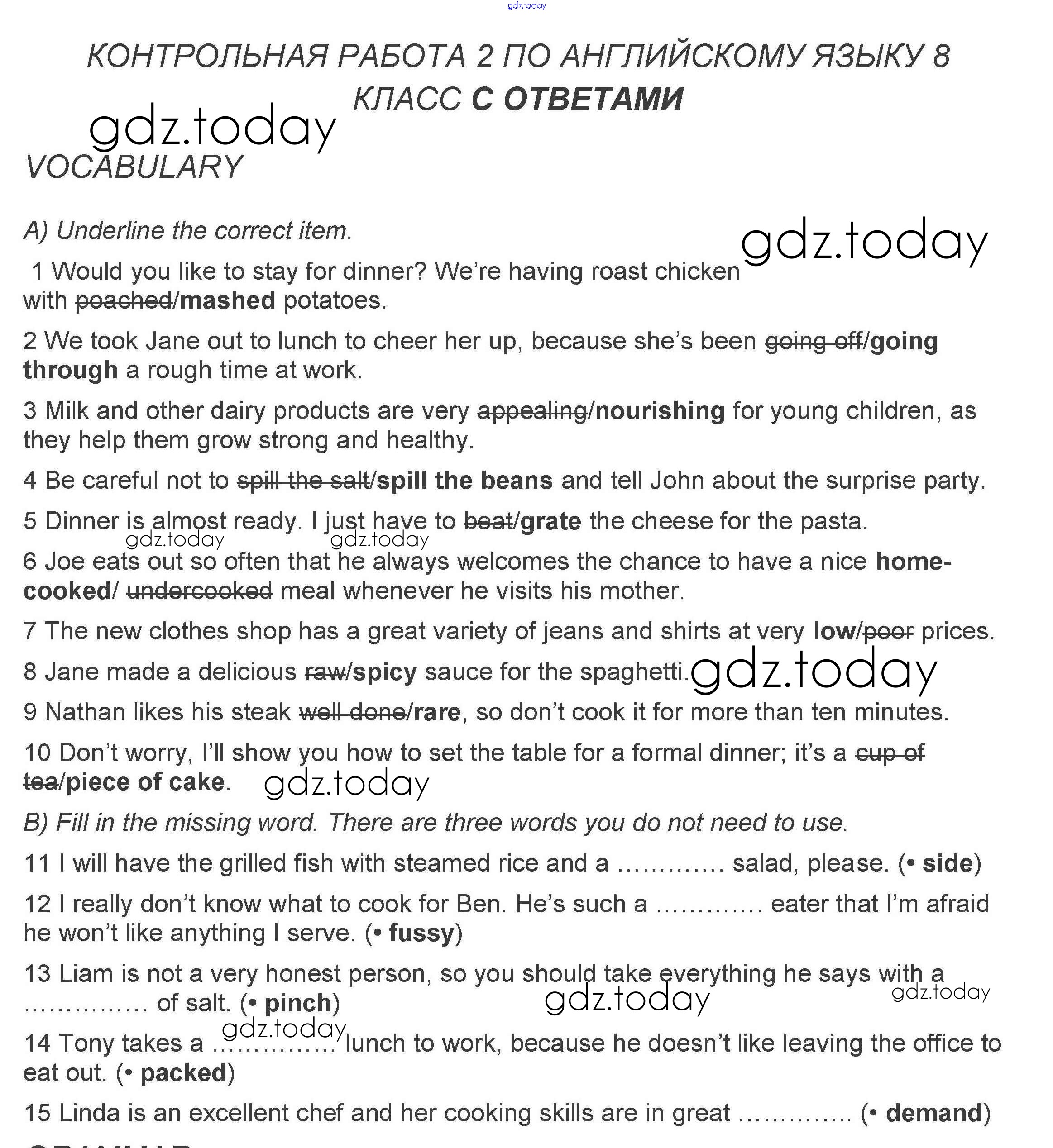На страницах сайта gdz.today вы найдете учебный и вспомогательный материал, направленный на улучшения знаний школьной программы. ГДЗ - онлайн мир знаний Решение. Контрольная работа 2 A, B Контрольным заданиям по Английскому языку для 8 класса Ваулина, Дули Просвещение Spotlight 2018