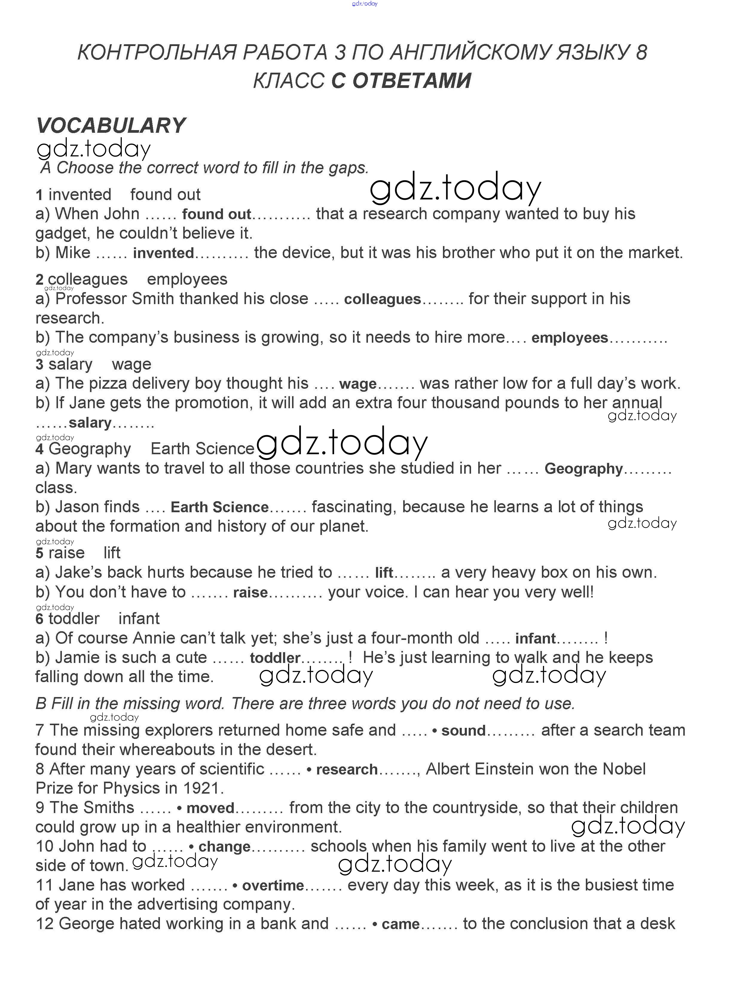 Ответы к Решение. Контрольная работа 3 A, B Контрольным заданиям по Английскому языку для 8 класса Ваулина, Дули Просвещение Spotlight 2018