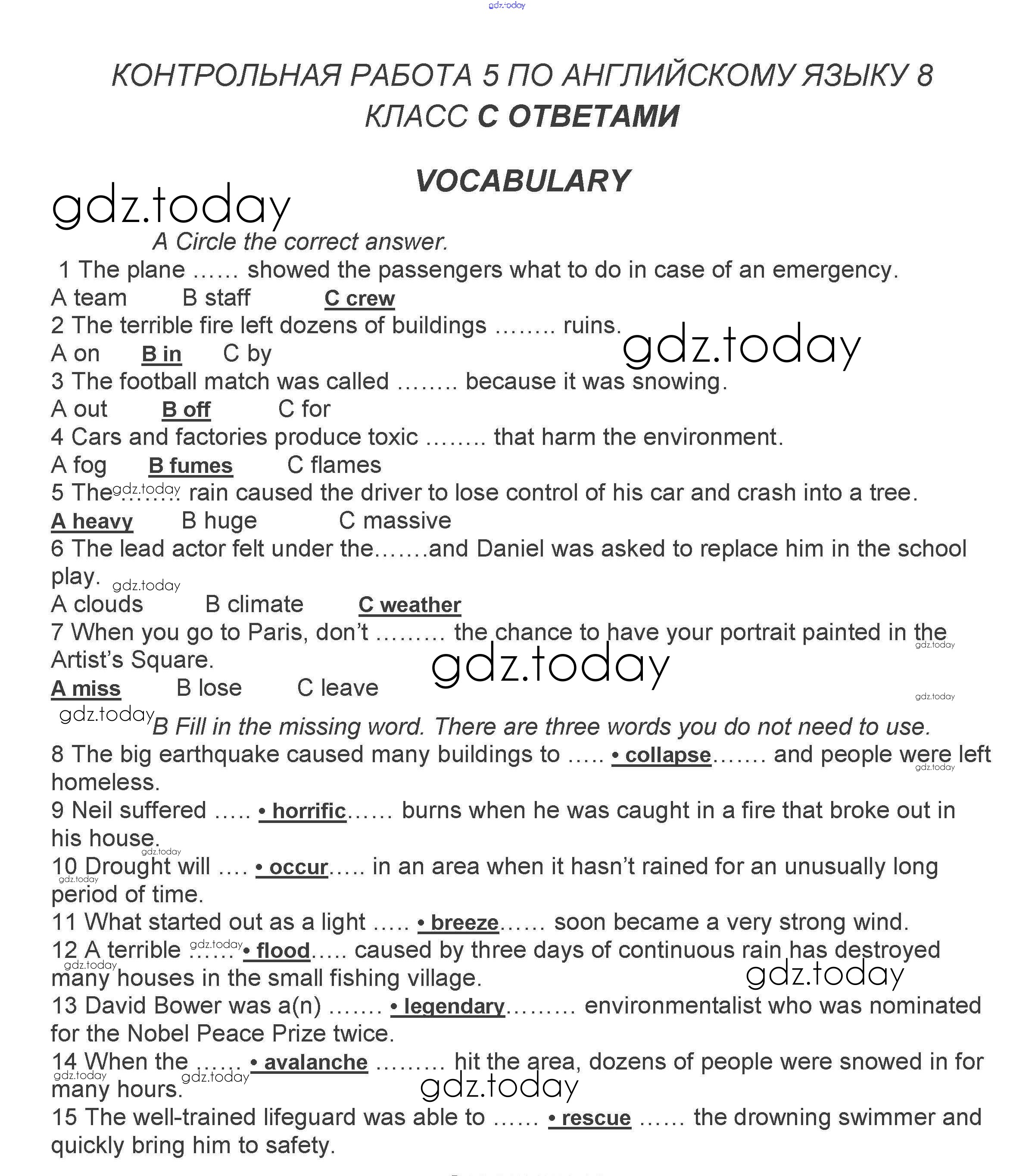На страницах сайта gdz.today вы найдете учебный и вспомогательный материал, направленный на улучшения знаний школьной программы. ГДЗ - онлайн мир знаний Решение. Контрольная работа 5 A, B Контрольным заданиям по Английскому языку для 8 класса Ваулина, Дули Просвещение Spotlight 2018