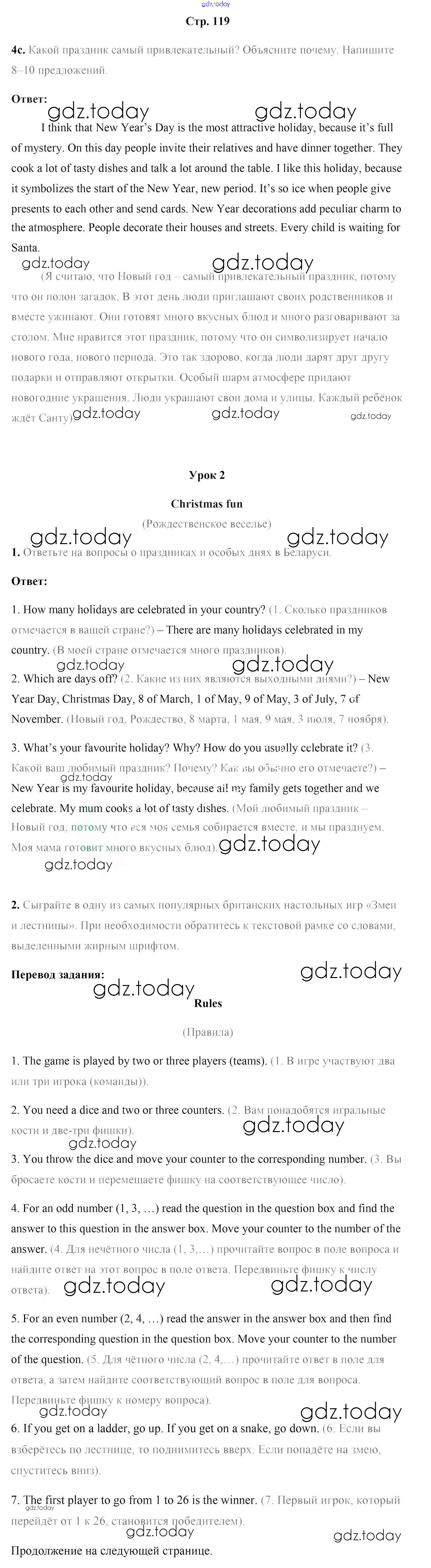 На страницах сайта gdz.today вы найдете учебный и вспомогательный материал, направленный на улучшения знаний школьной программы. ГДЗ - онлайн мир знаний Страницы (решение) 119 Учебнику по Английскому языку для 8 класса Лапицкая, Демченко Высшая школа 2016