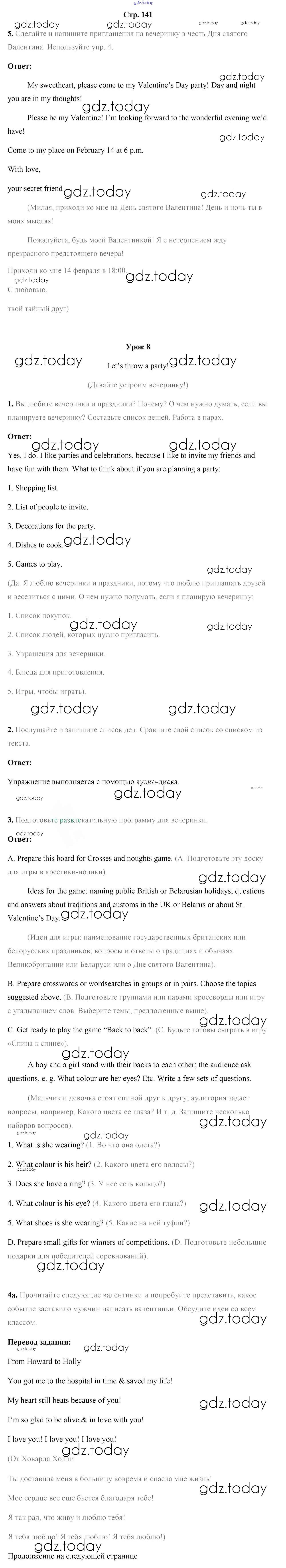 На страницах сайта gdz.today вы найдете учебный и вспомогательный материал, направленный на улучшения знаний школьной программы. ГДЗ - онлайн мир знаний Страницы (решение) 141 Учебнику по Английскому языку для 8 класса Лапицкая, Демченко Высшая школа 2016