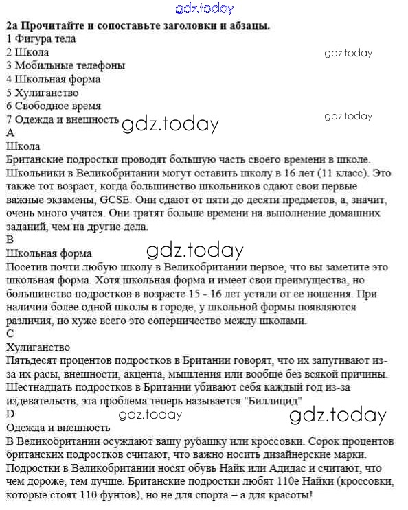 На страницах сайта gdz.today вы найдете учебный и вспомогательный материал, направленный на улучшения знаний школьной программы. ГДЗ - онлайн мир знаний Урок 5-6 Решение к Unit 1. A teenager's word 2a Учебнику по Английскому языку для 8 класса Дворецкая, Казырбаева Титул New Millennium 2014