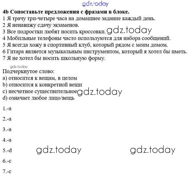 На страницах сайта gdz.today вы найдете учебный и вспомогательный материал, направленный на улучшения знаний школьной программы. ГДЗ - онлайн мир знаний Урок 5-6 Решение к Unit 1. A teenager's word 4b Учебнику по Английскому языку для 8 класса Дворецкая, Казырбаева Титул New Millennium 2014