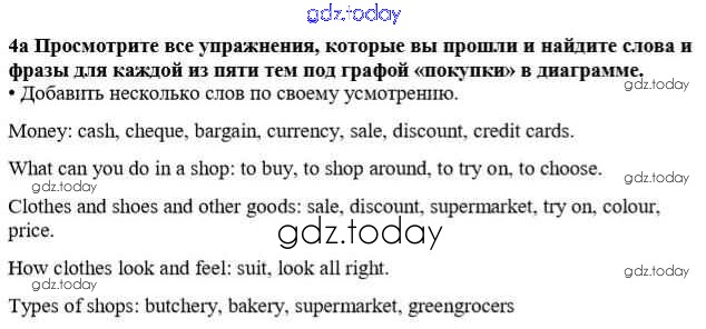 На страницах сайта gdz.today вы найдете учебный и вспомогательный материал, направленный на улучшения знаний школьной программы. ГДЗ - онлайн мир знаний Урок 2-3 Решение к Unit 2. Shop around 4a Учебнику по Английскому языку для 8 класса Дворецкая, Казырбаева Титул New Millennium 2014