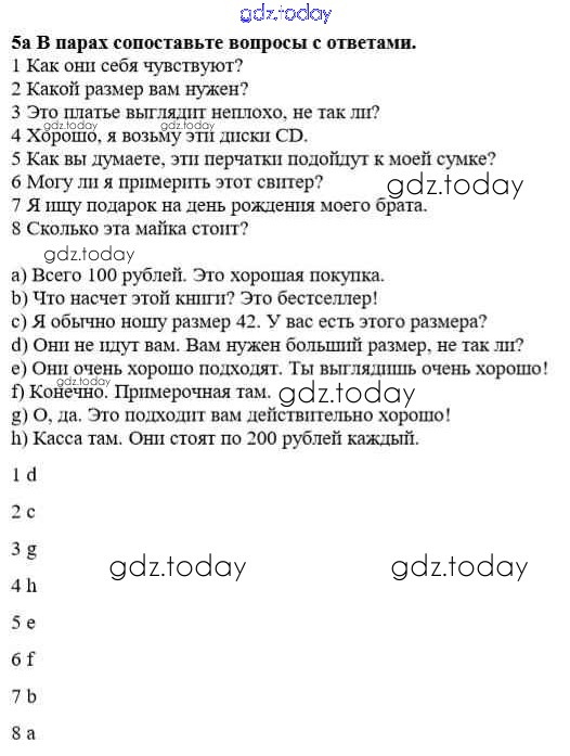 На страницах сайта gdz.today вы найдете учебный и вспомогательный материал, направленный на улучшения знаний школьной программы. ГДЗ - онлайн мир знаний Урок 2-3 Решение к Unit 2. Shop around 5a Учебнику по Английскому языку для 8 класса Дворецкая, Казырбаева Титул New Millennium 2014