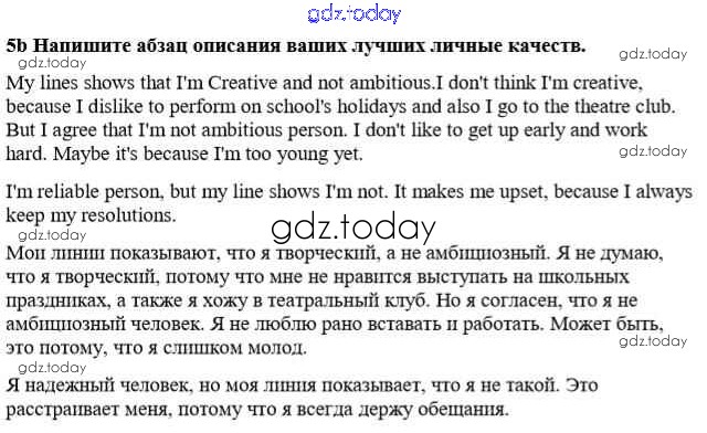 На страницах сайта gdz.today вы найдете учебный и вспомогательный материал, направленный на улучшения знаний школьной программы. ГДЗ - онлайн мир знаний Урок 1-2 Решение к Unit 3. Discover yourself 5b Учебнику по Английскому языку для 8 класса Дворецкая, Казырбаева Титул New Millennium 2014