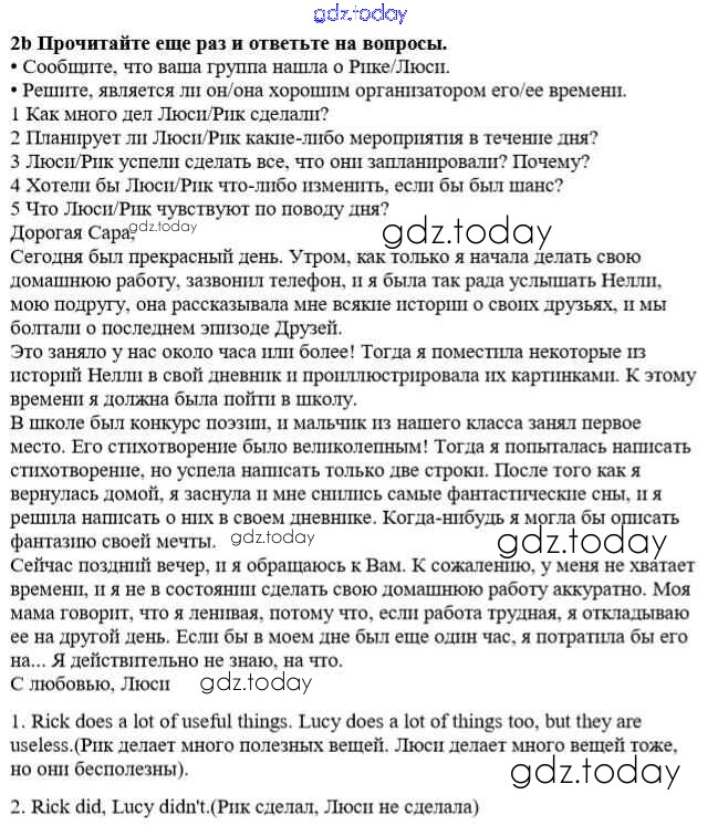 На страницах сайта gdz.today вы найдете учебный и вспомогательный материал, направленный на улучшения знаний школьной программы. ГДЗ - онлайн мир знаний Урок 5 Решение к Unit 3. Discover yourself 2b Учебнику по Английскому языку для 8 класса Дворецкая, Казырбаева Титул New Millennium 2014