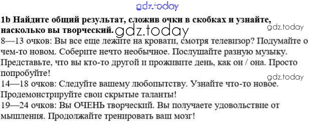 На страницах сайта gdz.today вы найдете учебный и вспомогательный материал, направленный на улучшения знаний школьной программы. ГДЗ - онлайн мир знаний Урок 1 Решение к Unit 5. Creativity and innovations 1b Учебнику по Английскому языку для 8 класса Дворецкая, Казырбаева Титул New Millennium 2014