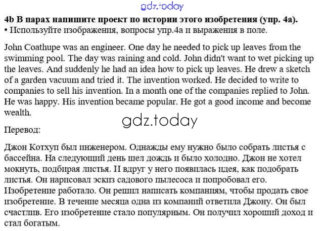 На страницах сайта gdz.today вы найдете учебный и вспомогательный материал, направленный на улучшения знаний школьной программы. ГДЗ - онлайн мир знаний Урок 4-5 Решение к Unit 5. Creativity and innovations 4b Учебнику по Английскому языку для 8 класса Дворецкая, Казырбаева Титул New Millennium 2014