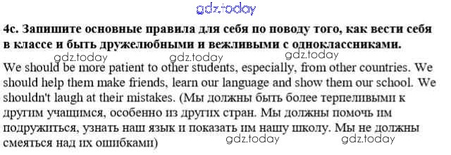 На страницах сайта gdz.today вы найдете учебный и вспомогательный материал, направленный на улучшения знаний школьной программы. ГДЗ - онлайн мир знаний Урок 5 Решение к Unit 7. Being together 4c Учебнику по Английскому языку для 8 класса Дворецкая, Казырбаева Титул New Millennium 2014