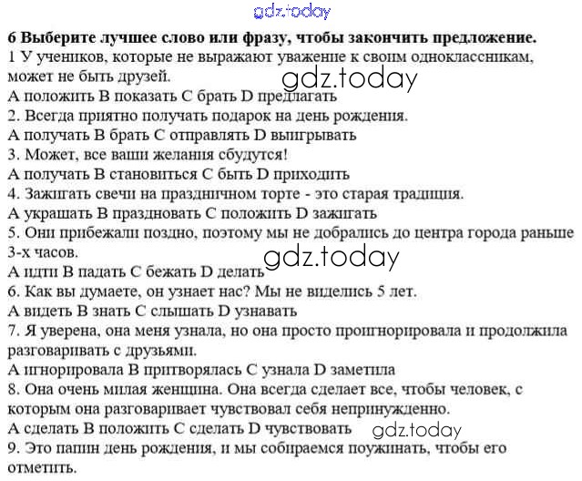 На страницах сайта gdz.today вы найдете учебный и вспомогательный материал, направленный на улучшения знаний школьной программы. ГДЗ - онлайн мир знаний Урок 7 Решение к Unit 7. Being together 6 Учебнику по Английскому языку для 8 класса Дворецкая, Казырбаева Титул New Millennium 2014