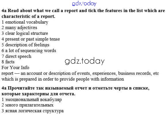 На страницах сайта gdz.today вы найдете учебный и вспомогательный материал, направленный на улучшения знаний школьной программы. ГДЗ - онлайн мир знаний Урок 1 Решение к Unit 9. The blue planet 4a Учебнику по Английскому языку для 8 класса Дворецкая, Казырбаева Титул New Millennium 2014