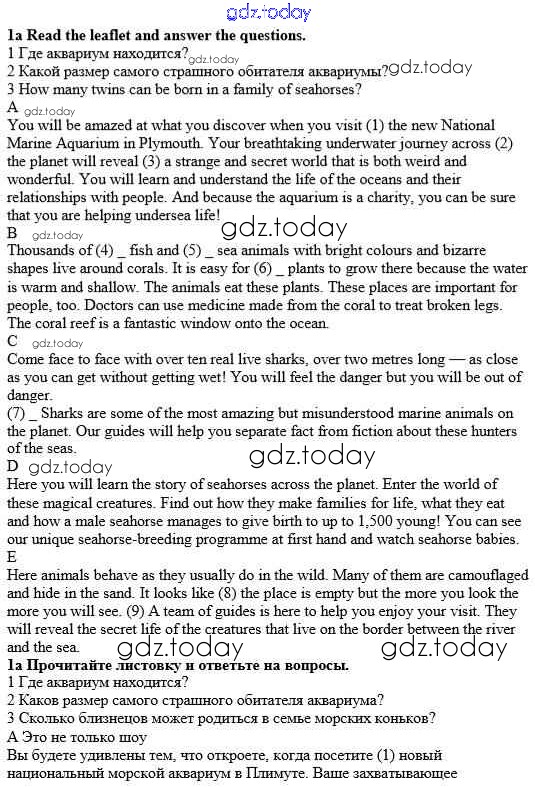 На страницах сайта gdz.today вы найдете учебный и вспомогательный материал, направленный на улучшения знаний школьной программы. ГДЗ - онлайн мир знаний Урок 3-4 Решение к Unit 9. The blue planet 1a Учебнику по Английскому языку для 8 класса Дворецкая, Казырбаева Титул New Millennium 2014