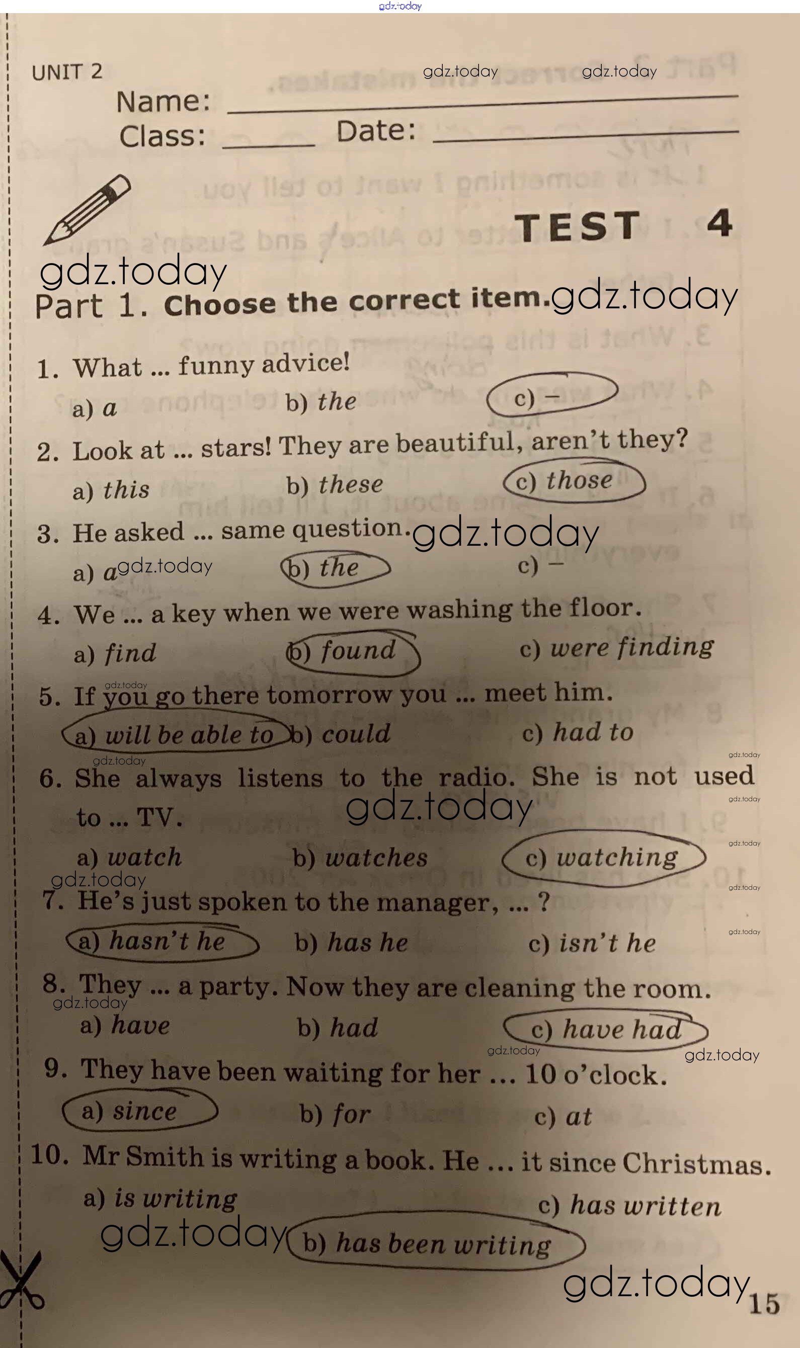 На страницах сайта gdz.today вы найдете учебный и вспомогательный материал, направленный на улучшения знаний школьной программы. ГДЗ - онлайн мир знаний Страницы (решение) 15 Проверочным работам по Английскому языку для 8 класса Барашкова Экзамен УМК 2016