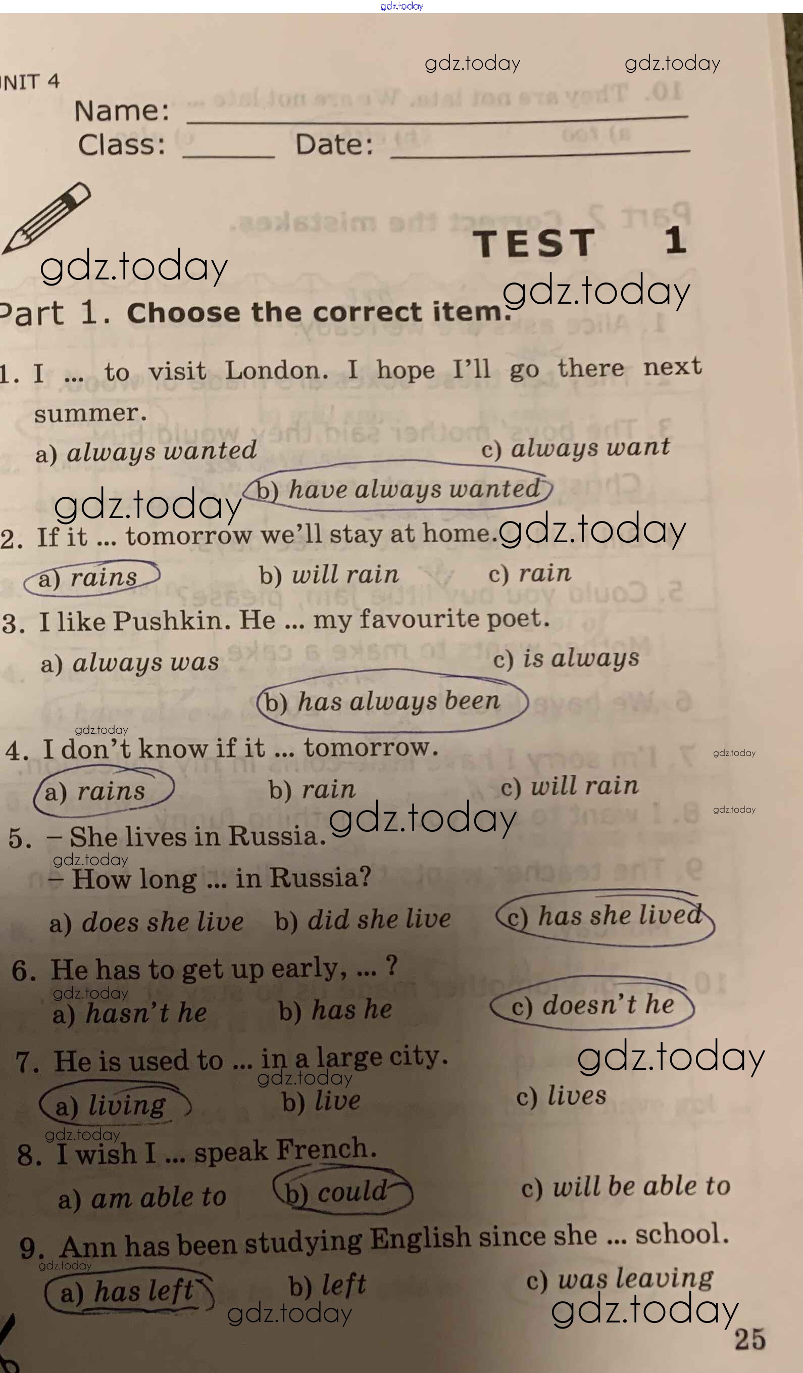 На страницах сайта gdz.today вы найдете учебный и вспомогательный материал, направленный на улучшения знаний школьной программы. ГДЗ - онлайн мир знаний Страницы (решение) 25 Проверочным работам по Английскому языку для 8 класса Барашкова Экзамен УМК 2016