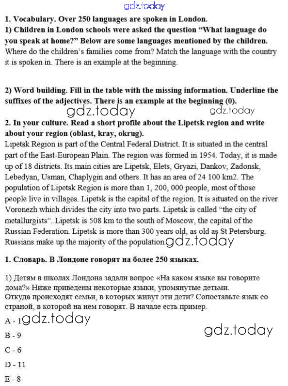 Ответы к Решение к Unit 1. My country at a glance урок 1 Рабочей тетради по Английскому языку для 8 класса Кузовлев, Перегудова Просвещение 2014
