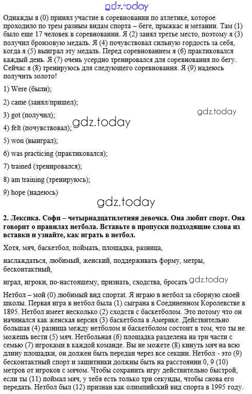Ответы к Решение к Unit 4. Are you fond of sport? урок 2 Рабочей тетради по Английскому языку для 8 класса Кузовлев, Перегудова Просвещение 2014