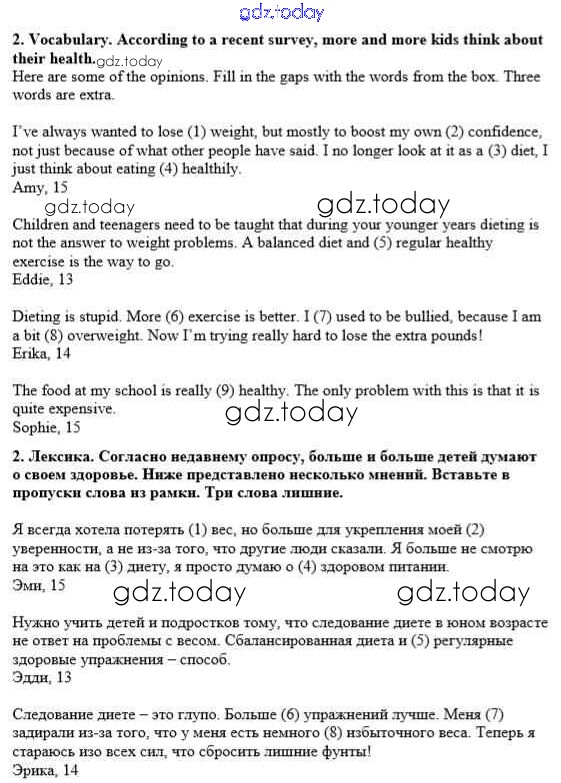 На страницах сайта gdz.today вы найдете учебный и вспомогательный материал, направленный на улучшения знаний школьной программы. ГДЗ - онлайн мир знаний Consolidation Решение к Unit 5. A healthy living guide 2 Рабочей тетради по Английскому языку для 8 класса Кузовлев, Перегудова Просвещение 2014