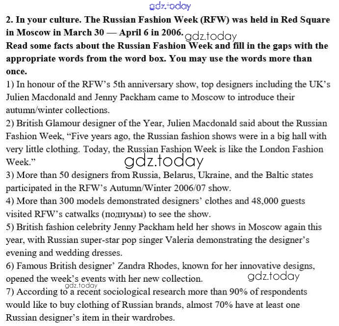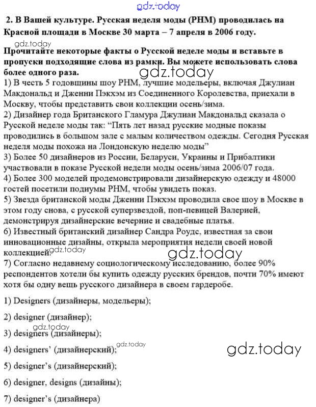 На страницах сайта gdz.today вы найдете учебный и вспомогательный материал, направленный на улучшения знаний школьной программы. ГДЗ - онлайн мир знаний Consolidation Решение к Unit 6. Changing times, changing styles 2 Рабочей тетради по Английскому языку для 8 класса Кузовлев, Перегудова Просвещение 2014