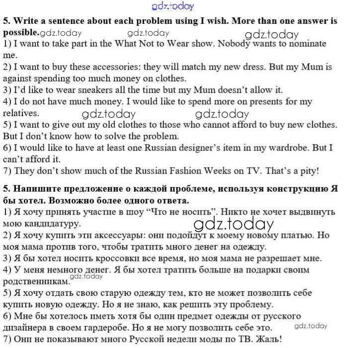 На страницах сайта gdz.today вы найдете учебный и вспомогательный материал, направленный на улучшения знаний школьной программы. ГДЗ - онлайн мир знаний Consolidation Решение к Unit 6. Changing times, changing styles 5 Рабочей тетради по Английскому языку для 8 класса Кузовлев, Перегудова Просвещение 2014