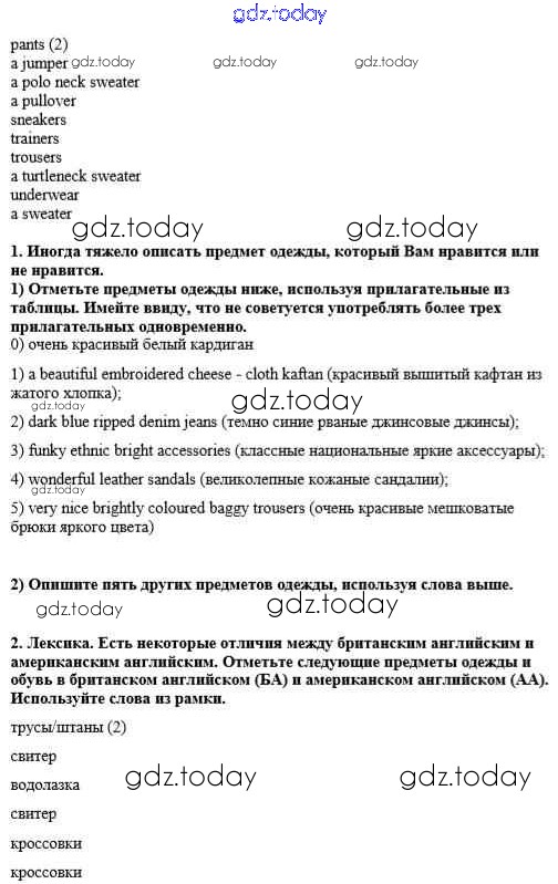 На страницах сайта gdz.today вы найдете учебный и вспомогательный материал, направленный на улучшения знаний школьной программы. ГДЗ - онлайн мир знаний Решение к Unit 6. Changing times, changing styles урок 2 Рабочей тетради по Английскому языку для 8 класса Кузовлев, Перегудова Просвещение 2014