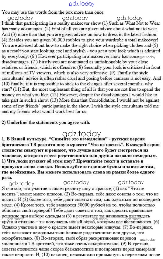 На страницах сайта gdz.today вы найдете учебный и вспомогательный материал, направленный на улучшения знаний школьной программы. ГДЗ - онлайн мир знаний Решение к Unit 6. Changing times, changing styles урок 8 Рабочей тетради по Английскому языку для 8 класса Кузовлев, Перегудова Просвещение 2014