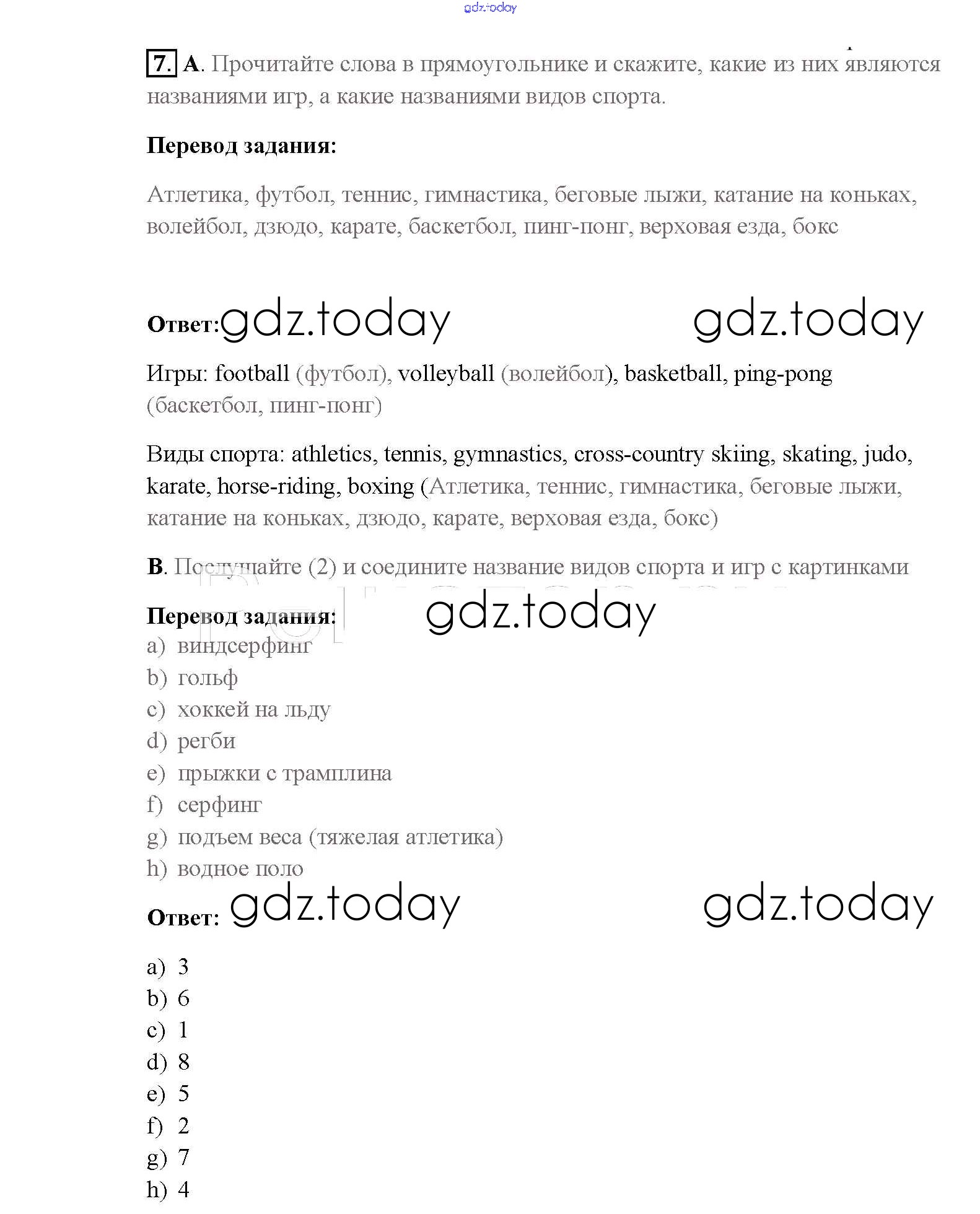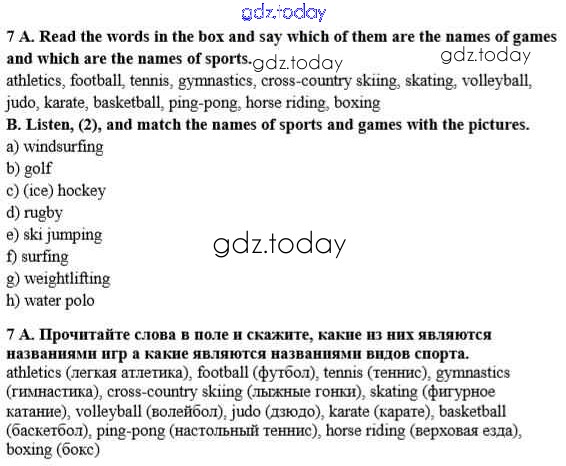 На страницах сайта gdz.today вы найдете учебный и вспомогательный материал, направленный на улучшения знаний школьной программы. ГДЗ - онлайн мир знаний Step 1 Решение к Unit 1. Sport and outdoor activities 7 Учебнику по Английскому языку для 8 класса Афанасьева, Михеева Дрофа Rainbow 2016