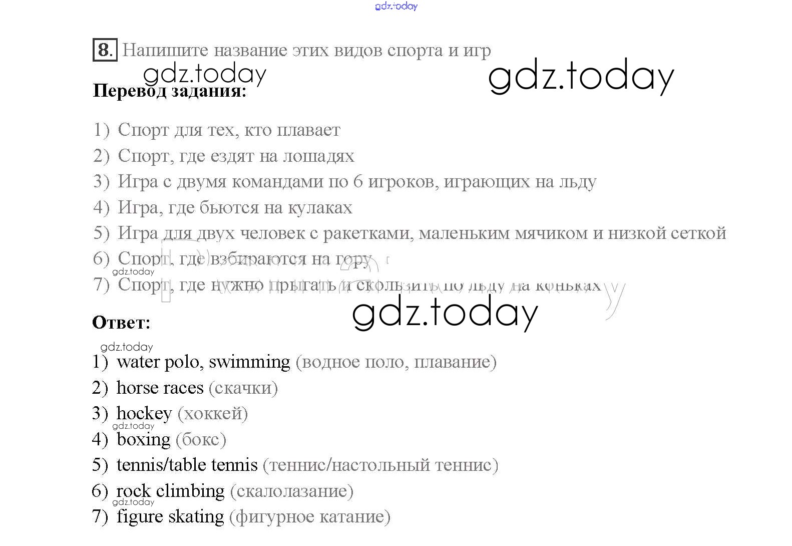 На страницах сайта gdz.today вы найдете учебный и вспомогательный материал, направленный на улучшения знаний школьной программы. ГДЗ - онлайн мир знаний Step 3 Решение к Unit 1. Sport and outdoor activities 8 Учебнику по Английскому языку для 8 класса Афанасьева, Михеева Дрофа Rainbow 2016