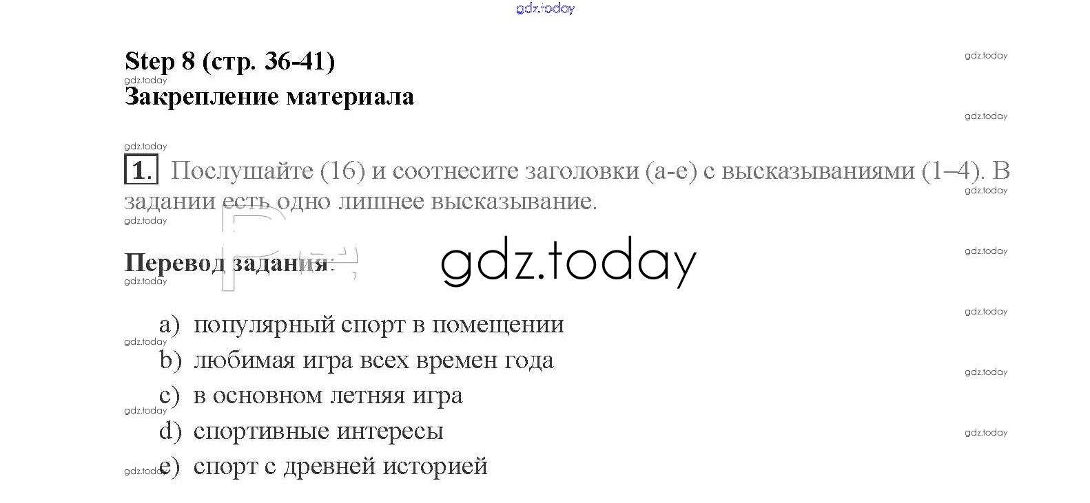 На страницах сайта gdz.today вы найдете учебный и вспомогательный материал, направленный на улучшения знаний школьной программы. ГДЗ - онлайн мир знаний Step 8 Решение к Unit 1. Sport and outdoor activities 1 Учебнику по Английскому языку для 8 класса Афанасьева, Михеева Дрофа Rainbow 2016